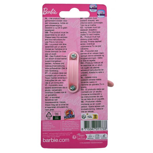 Diese hübsche Barbie-Fahrradklingel lässt sich leicht am Fahrrad eines jeden Barbie-Fans befestigen! Läute deine Fahrradklingel, damit jeder weiß, dass du um die Ecke kommst. Klingelingeling!