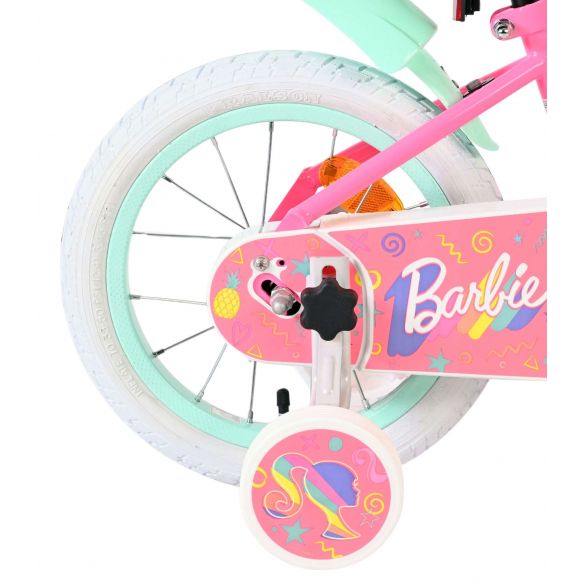 De Barbie 14 inch kinderfiets combineert stijl, veiligheid en plezier – perfect voor elk avontuur in Barbie-stijl.