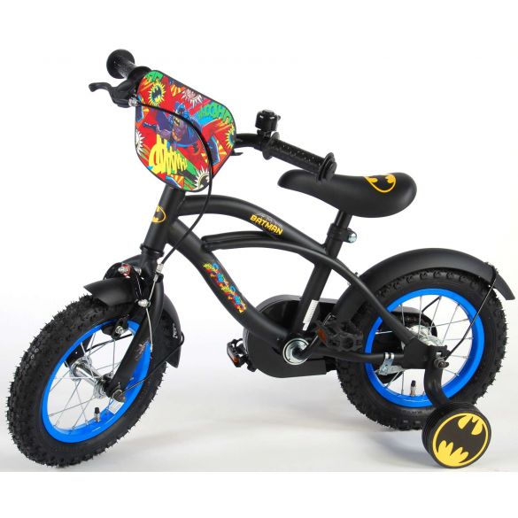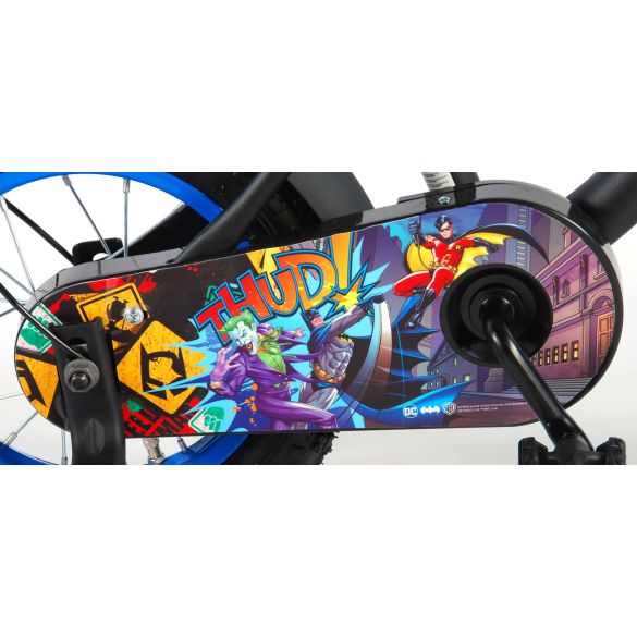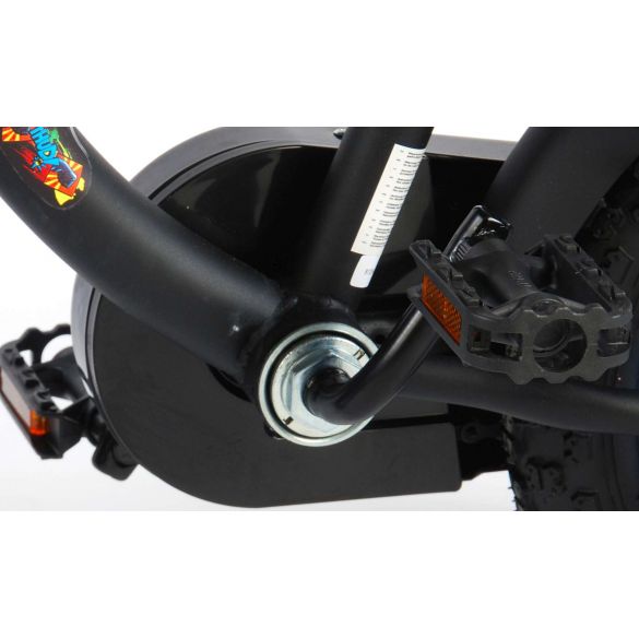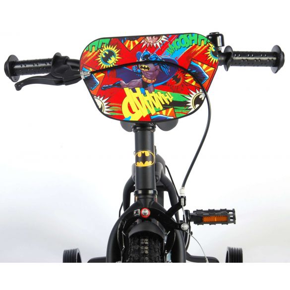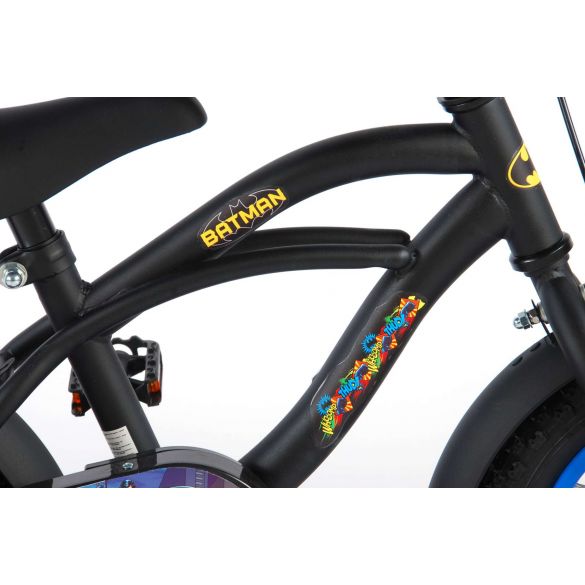 Sicherheit geht vor! Deshalb hat dieses coole Fahrrad eine Handbremse und eine Rücktrittbremse und einen geschlossenen Kettenkasten. Außerdem hat das Fahrrad abnehmbare Seitenräder zum schnellen Erlernen, eine Klingel und Reflektoren in den Pedalen. Auch an den Komfort wurde gedacht. Das schöne schwarze Batman-Bike mit blauen Akzenten hat extralange Schutzbleche, die allen Schmutz abhalten, einen angenehm weichen Sattel und einen einzigartigen Rahmen, der einiges aushält. Damit Sie so lange wie möglich Freude an Ihrem Fahrrad haben, sind Sattel und Lenker höhenverstellbar. Kurzum: ein hochwertiges Fahrrad, an dem Ihr Kind jahrelang Freude haben wird!