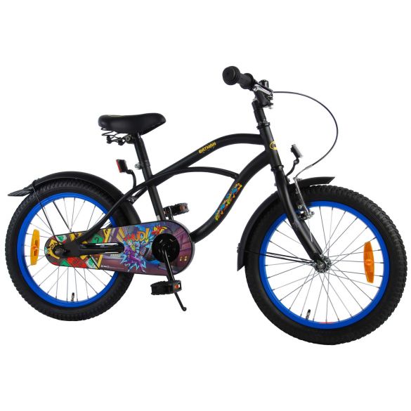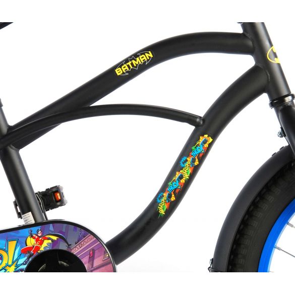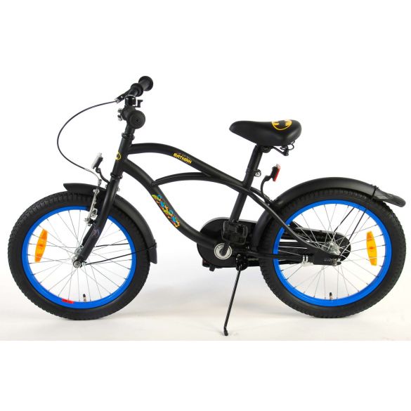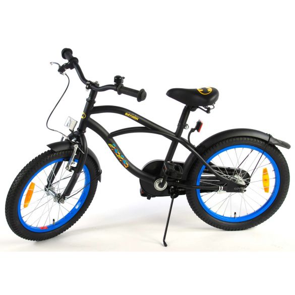 Sicherheit geht vor! Deshalb hat dieses coole Fahrrad eine Handbremse, eine Rücktrittbremse und einen geschlossenen Kettenschutz. Außerdem haben die Fahrräder eine Klingel und Reflektoren vorne, hinten und an den Pedalen. Auch an den Komfort wurde gedacht. Das schöne schwarze Batman-Bike mit blauen Akzenten hat extra lange Schutzbleche, die den ganzen Schmutz fernhalten, einen angenehm weichen Sattel und einen einzigartigen Rahmen, der einiges aushält. Damit Sie so lange wie möglich Freude an Ihrem Fahrrad haben, sind Sattel und Lenker höhenverstellbar. Kurzum: ein hochwertiges Fahrrad, an dem Ihr Kind jahrelang Freude haben wird!