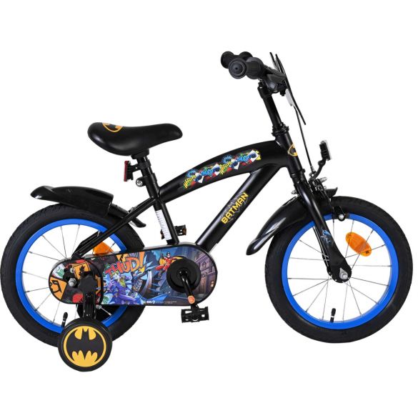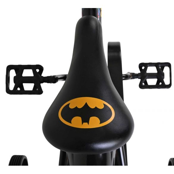 Veiligheid staat voorop! Daarom heeft deze gave fiets een handrem en terugtraprem en een gesloten kettingkast. Daarnaast heeft de fiets afneembare zijwieltjes om snel te leren fietsen, een bel, en reflectoren in de trappers. Ook aan het comfort is gedacht. De mooie zwarte Batman fiets met blauwe accenten heeft extra lange spatborden om al het vuil tegen te houden, een aangenaam zacht zadel en een uniek frame dat wel tegen een stootje kan. Om zo lang mogelijk van de fiets te kunnen genieten zijn het zadel en stuur in hoogte verstelbaar. Kortom: een topkwaliteit fiets waar uw kind nog jaren van kan genieten!