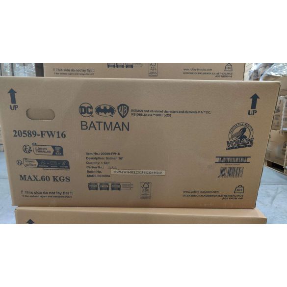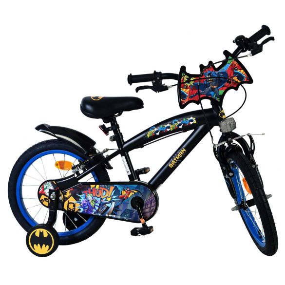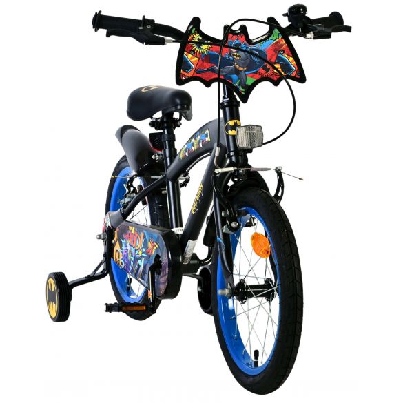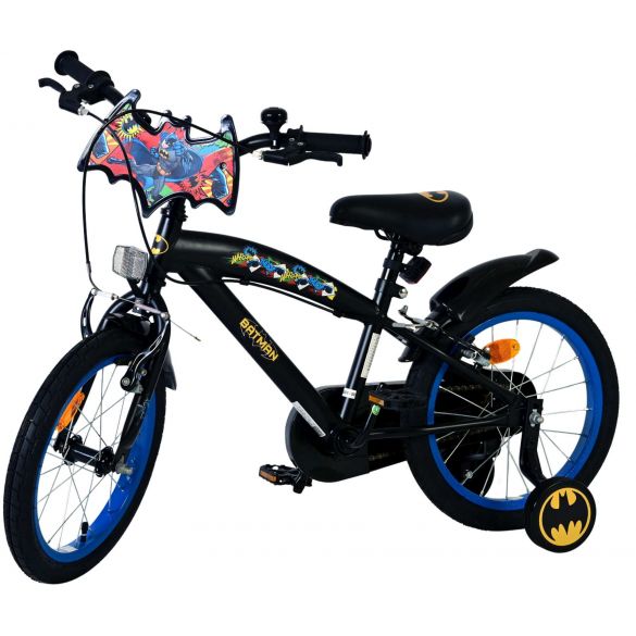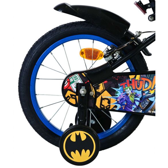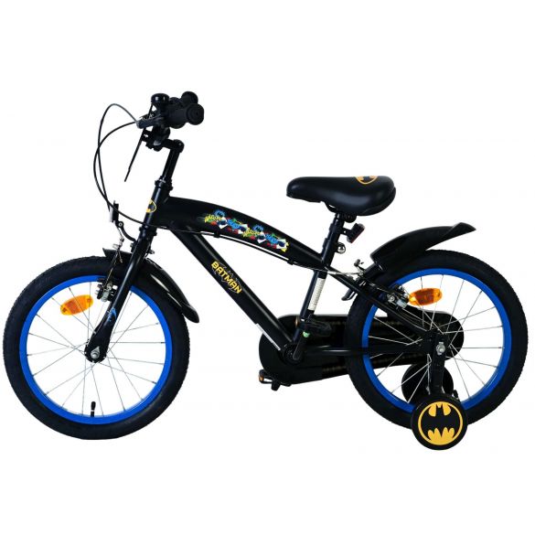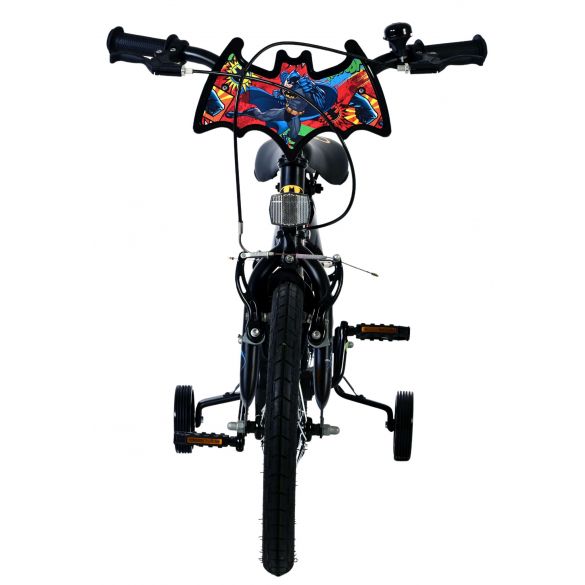Batman Jungenfahrrad 16 Zoll 85% zusammengebaut. Speziell für alle Fans dieses Superhelden hat Volare ein Fahrrad im Batman-Stil entworfen. Das Fahrrad hat einen coolen schwarzen Rahmen mit Batman-Stickern. Der Kettenschutz ist komplett geschlossen und hat einen stabilen Druck. Um zu lernen, wie man schnell fährt, hat das Fahrrad Seitenräder. Außerdem hat das Fahrrad eine Fahrradglocke und 2 Handbremsen (KEINE RUCKTRITTBREMSE).