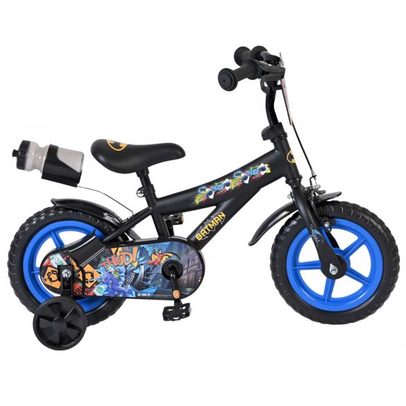 Met de Batman 12 inch jongensfiets wordt leren fietsen een stoer avontuur. Deze kinderfiets is perfect voor de eerste veilige meters en is uitgerust met massieve EVA banden. Daardoor rijdt de fiets licht en comfortabel en heb je geen zorgen over lekke banden. Deze fiets heeft een doortrapsysteem waarmee het kind voor - als achteruit kan fietsen. Ook beschikt de fiets over 1 handrem.