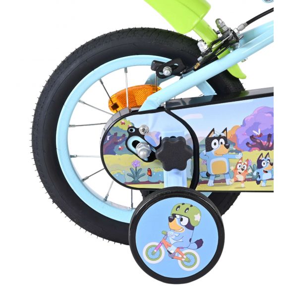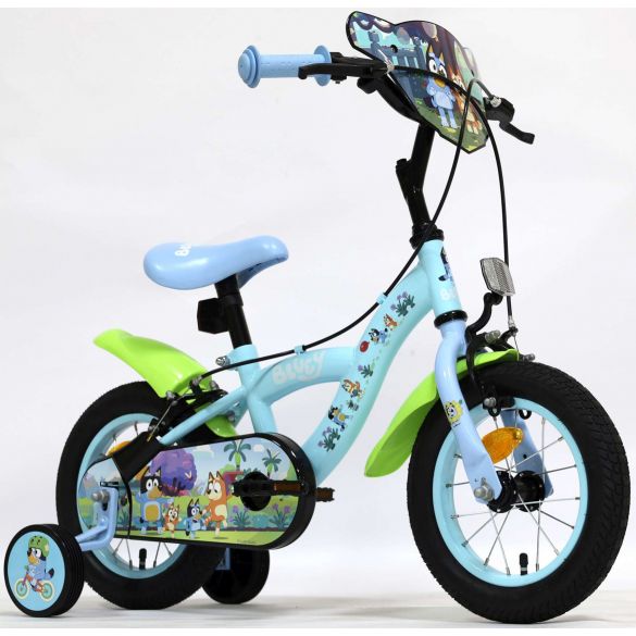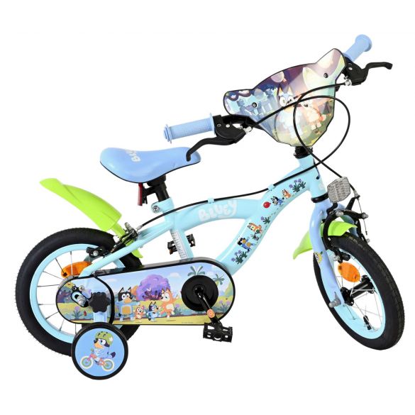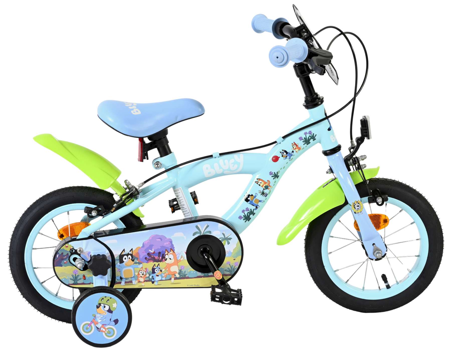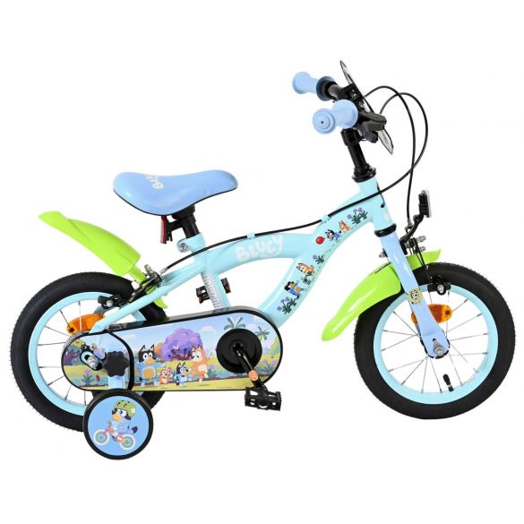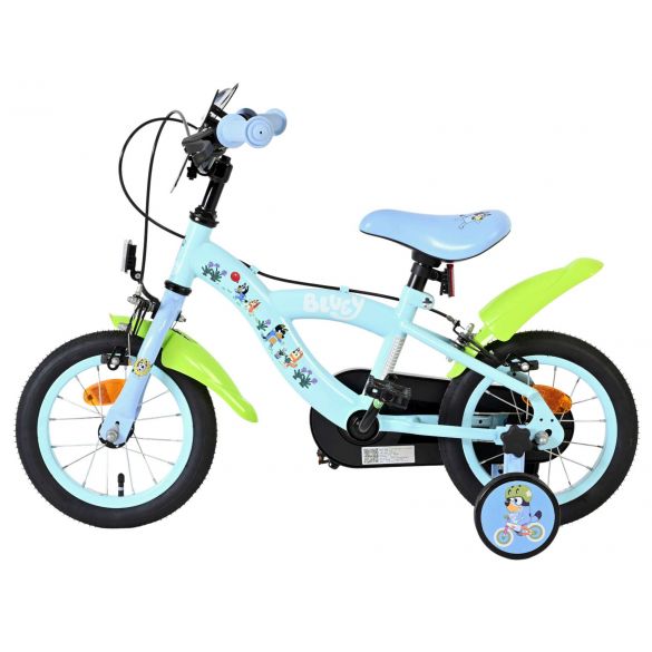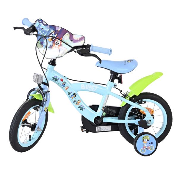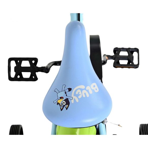 Voor de allerkleinsten die dol zijn op Bluey is er nu de perfecte eerste fiets: de 12 inch Bluey kinderfiets van Volare! Deze vrolijke lichtblauwe fiets, afgewerkt met neon groene spatborden, zorgt meteen voor een grote glimlach op elk gezicht. Met een stevige constructie en kleurrijke Bluey-afbeeldingen op het frame én op het stoere voorplaatje, wordt elke rit een vrolijk avontuur met hun favoriete tv-heldin.