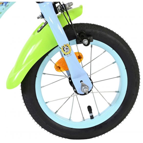 Stap op en beleef de leukste avonturen met de Volare Bluey 12 inch kinderfiets! Deze prachtige lichtblauwe fiets is speciaal ontworpen voor jonge Bluey-fans en combineert veiligheid, comfort én vrolijk design. Overal op de fiets vind je vrolijke afbeeldingen van Bluey, met als blikvanger het voorplaatje op het stuur dat meteen de aandacht trekt.