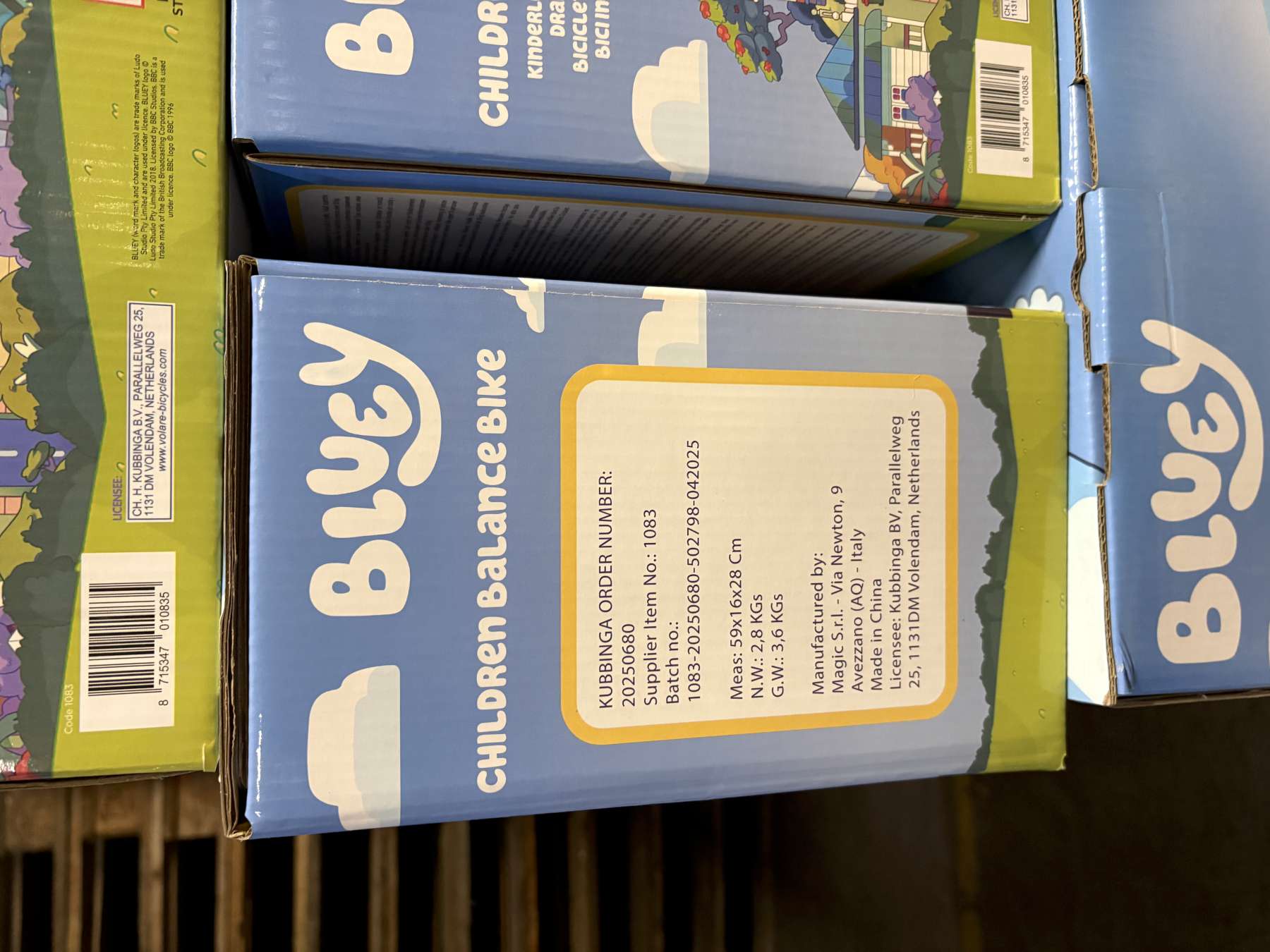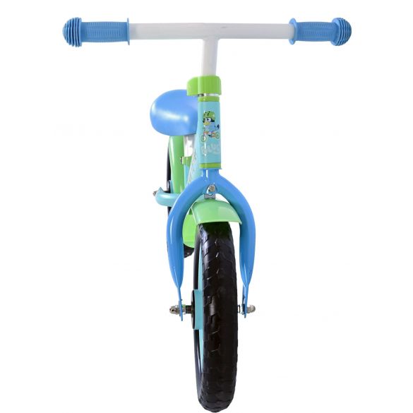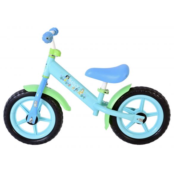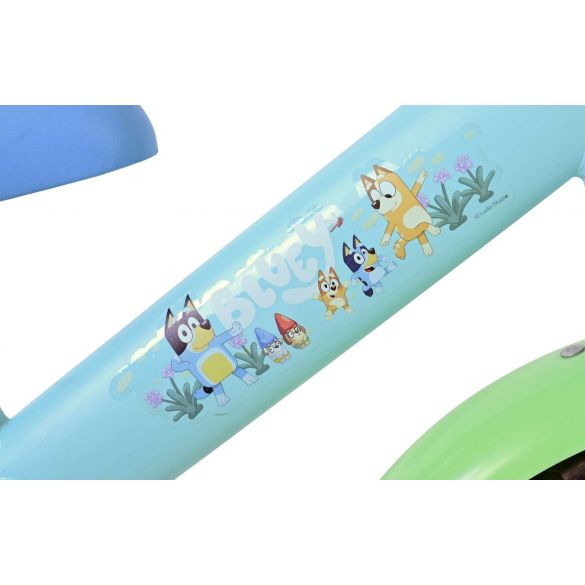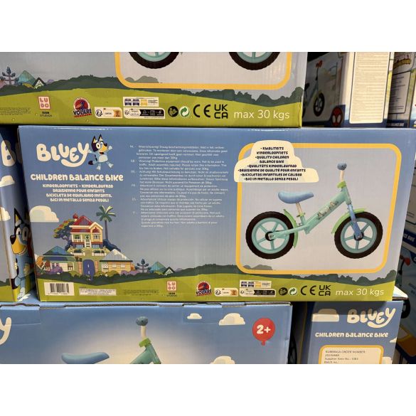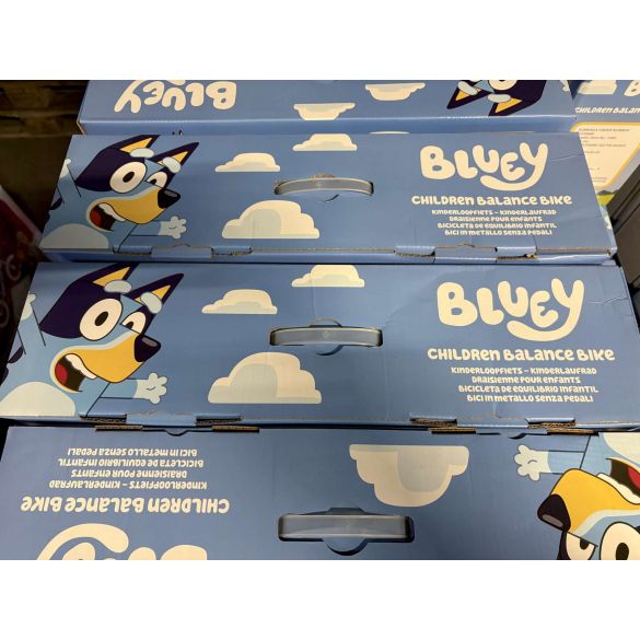 Speciaal voor de allerkleinste avonturiers is er deze schattige Bluey loopfiets in een frisse lichtblauwe kleur. De fiets is prachtig versierd met vrolijke afbeeldingen van Bluey, het bekende hondje uit de populaire kinderserie.
