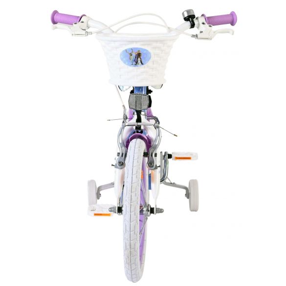 Sicherheit steht an erster Stelle! Deshalb hat dieses coole Fahrrad zwei Handbremsen (keine Rücktrittbremse) und abnehmbare Seitenräder. Das schöne blau-lila Frozen Fahrrad ist mit einem Korb ausgestattet. Damit du möglichst lange Freude an dem Fahrrad hast, sind der Sattel und der Lenker höhenverstellbar.