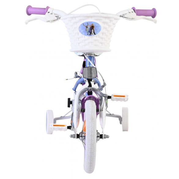 Veiligheid staat voorop! Daarom heeft deze gave fiets twee handremmen (geen terugtraprem) en afneembare zijwieltjes. De mooie blauw paarse Frozen fiets is voorzien van een mandje. Om zo lang mogelijk van de fiets te kunnen genieten zijn het zadel en stuur in hoogte verstelbaar.