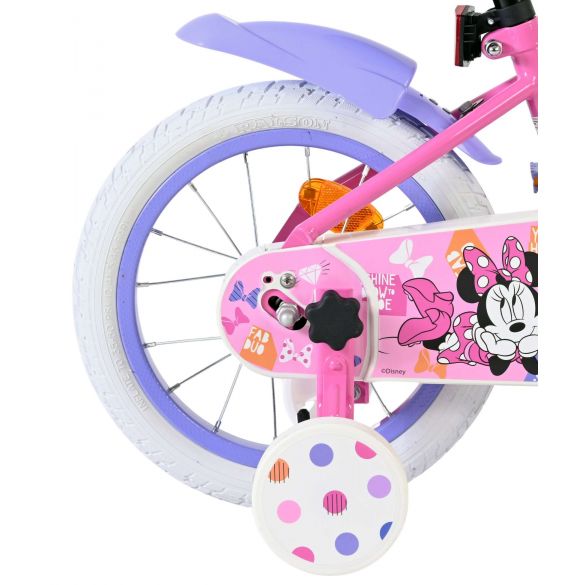 Voor ieder kind is leren fietsen een feestje met de Disney Minnie 14 inch kinderfiets!