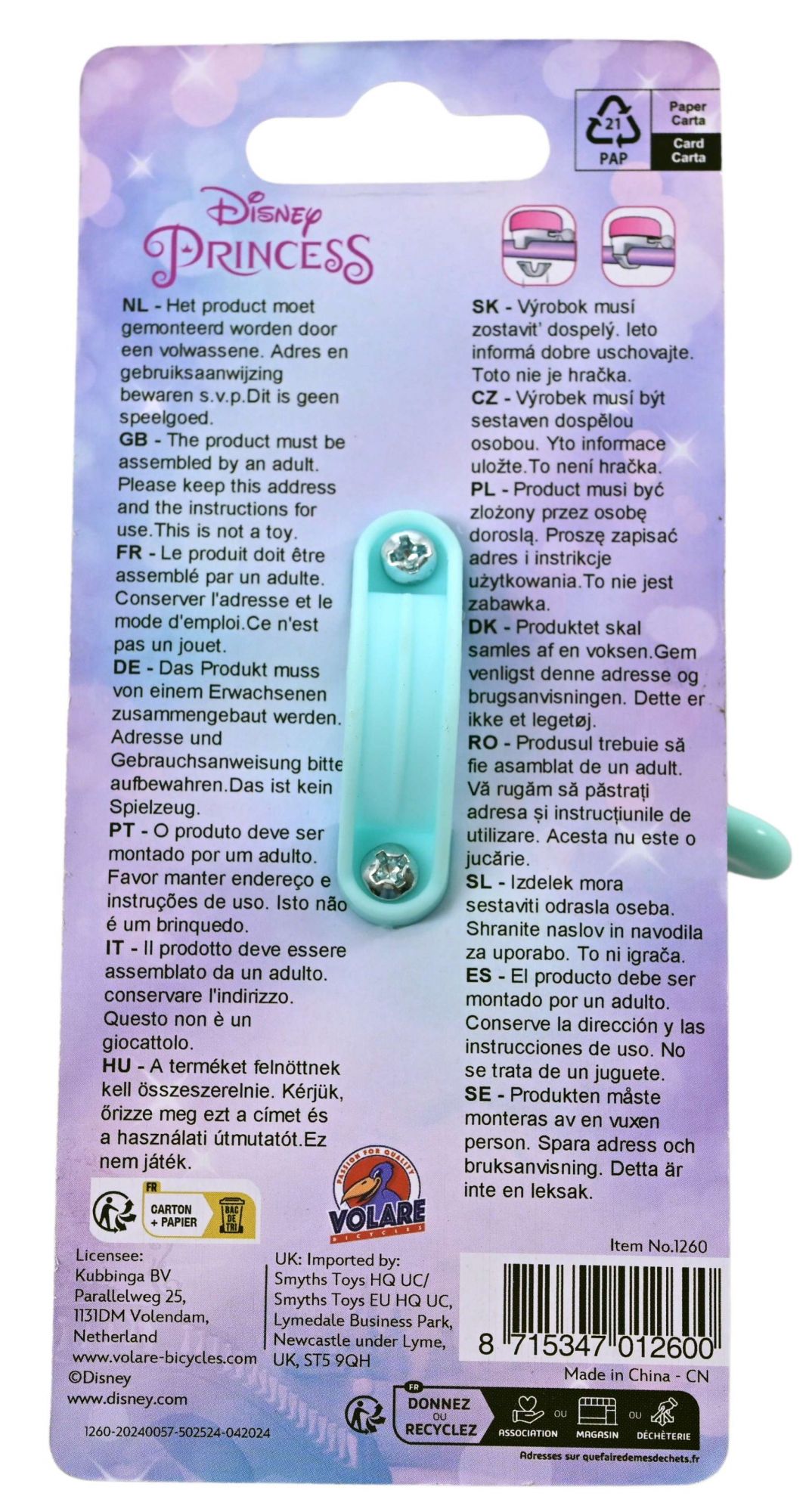 Es ist sehr einfach, diese Disney Princess Fahrradklingel zu befestigen. Lassen Sie Ihre Klingel schallen, sodass jeder weiß, dass Sie um die Ecke kommen. Ring-ring!
