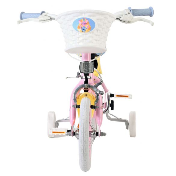 Veiligheid staat voorop! Daarom heeft deze gave fiets twee handremmen (geen terugtraprem) en afneembare zijwieltjes. Daarnaast heeft de fiets een leuke bel. Ook aan het comfort is gedacht. De mooie Crèmekleurige en tropische Stitch fiets is voorzien van een mandje. Om zo lang mogelijk van de fiets te kunnen genieten zijn het zadel en stuur in hoogte verstelbaar.