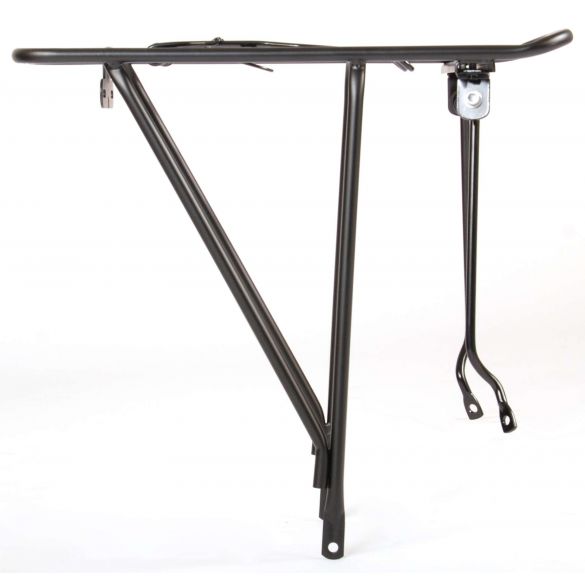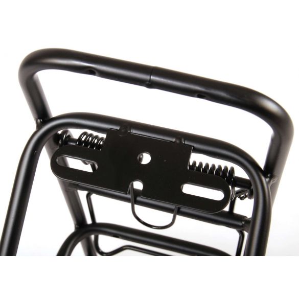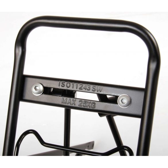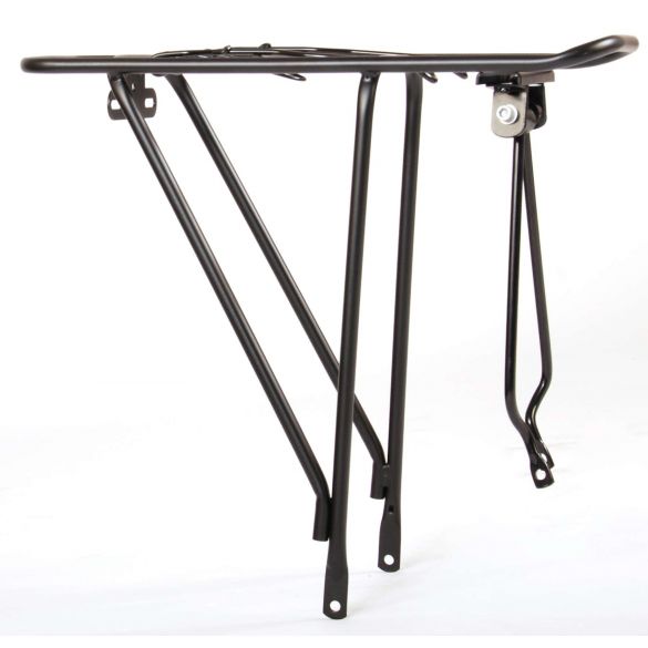 Dieser schwarze Volare-Gepäckträger lässt sich leicht an jedes 26-Zoll-Fahrrad montieren. Der Gepäckträger kann bis zu 25 kg heben. An der Rückseite des Gepäckträgers kann ein Rücklicht montiert werden.