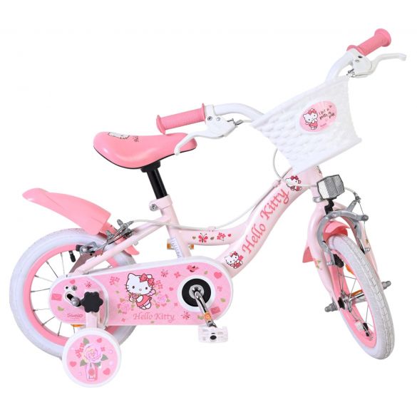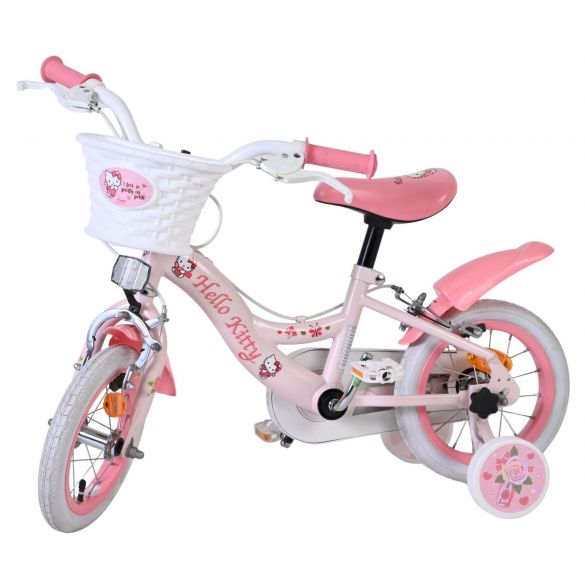 Met de Volare Hello Kitty 12 inch kinderfiets in lichtroze wordt leren fietsen een feestje. Deze vrolijke fiets is ontworpen om jonge fietsers een veilige en comfortabele start te geven, met een stabiele en kindvriendelijke opbouw.