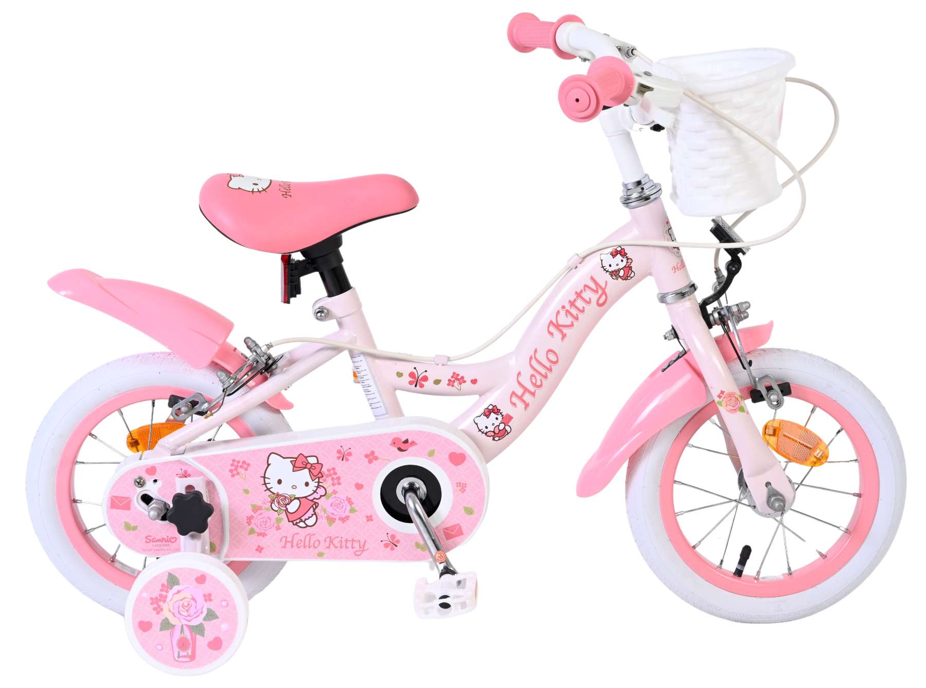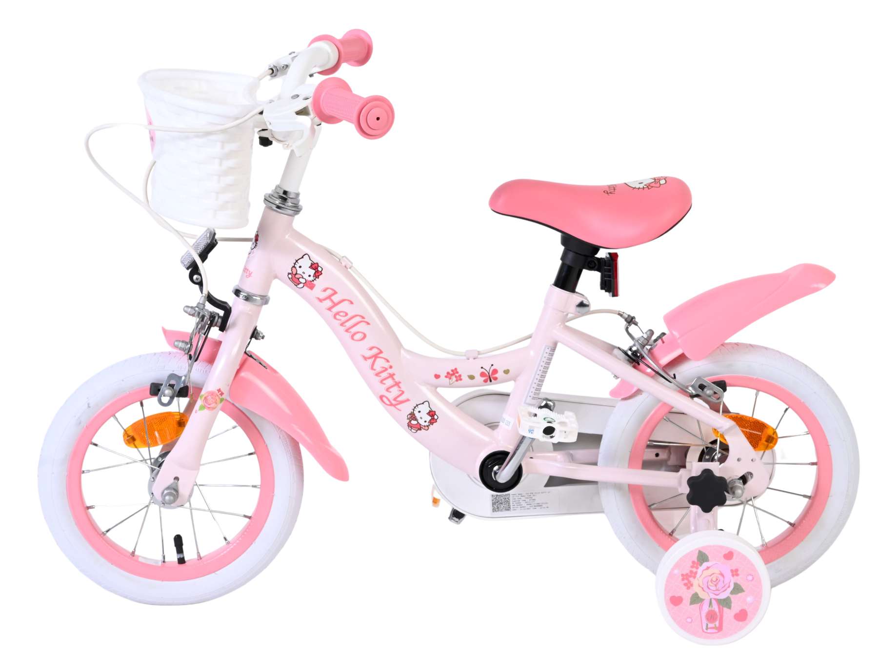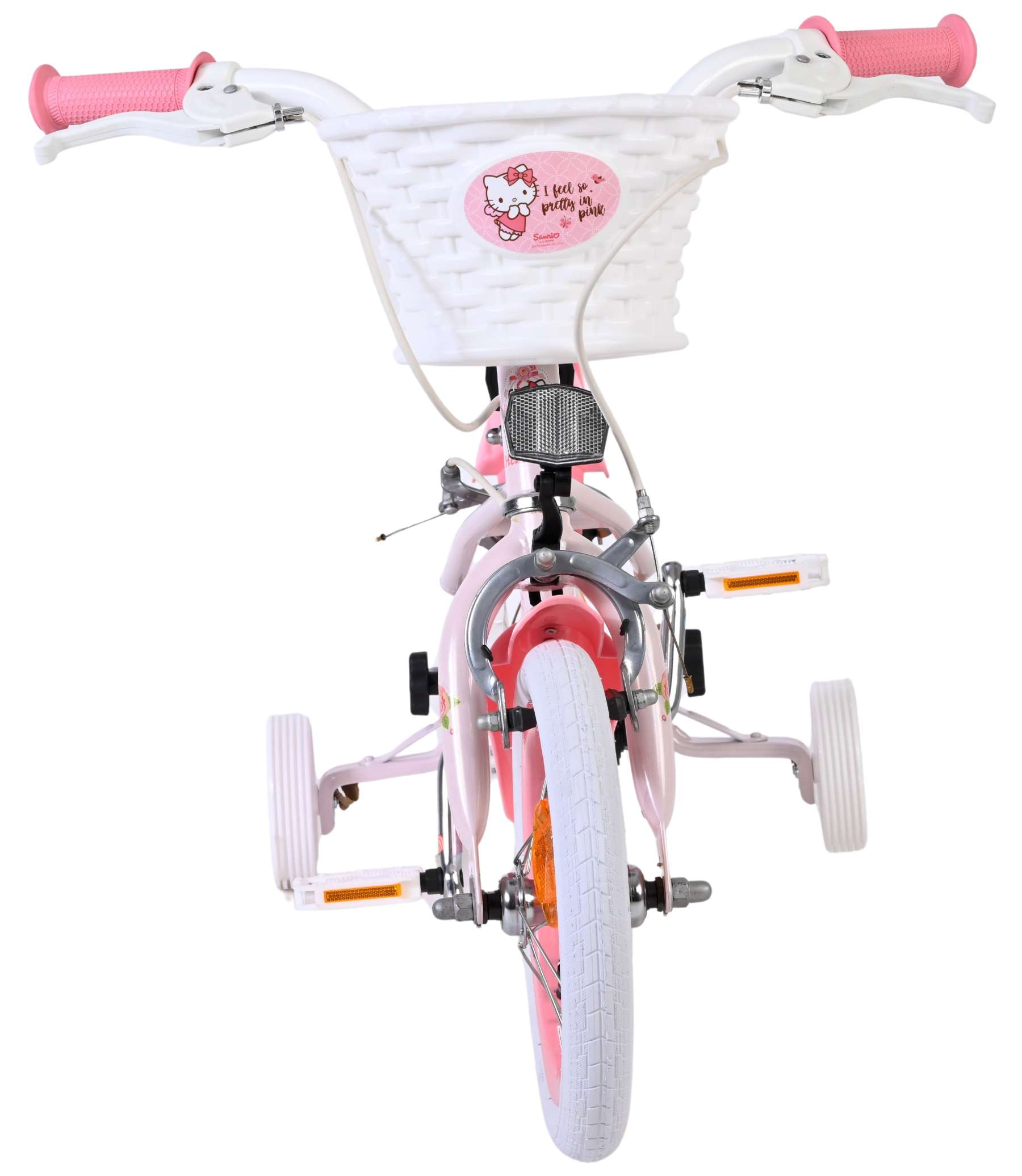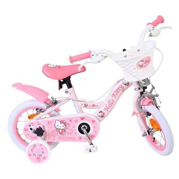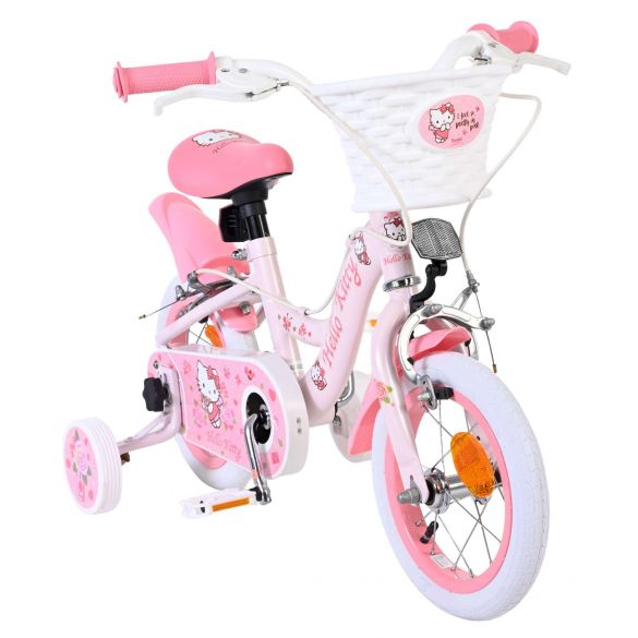 Met de Volare Hello Kitty 12 inch kinderfiets in lichtroze wordt leren fietsen een feestje. Deze vrolijke fiets is ontworpen om jonge fietsers een veilige en comfortabele start te geven, met een stabiele en kindvriendelijke opbouw.