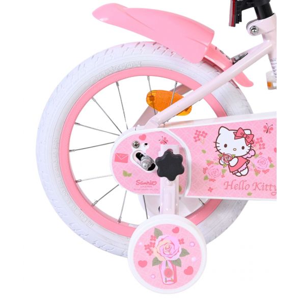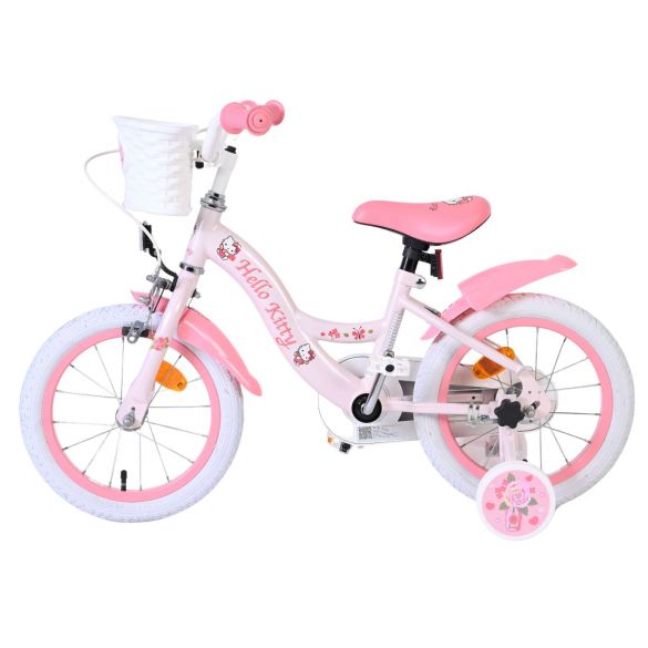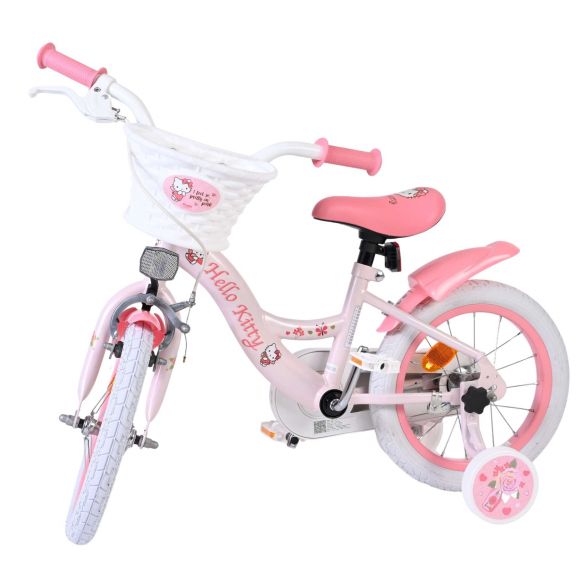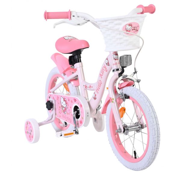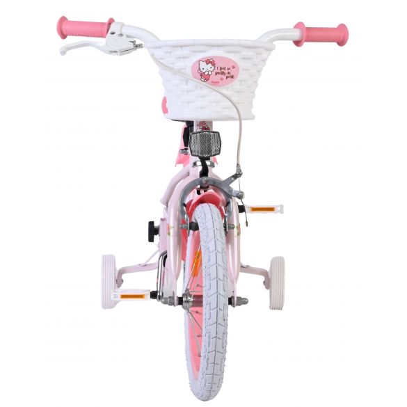 Met de Volare Hello Kitty 14 inch kinderfiets in lichtroze wordt leren fietsen een feestje. Deze vrolijke fiets is ontworpen om jonge fietsers een veilige en comfortabele start te geven, met een stabiele en kindvriendelijke opbouw.