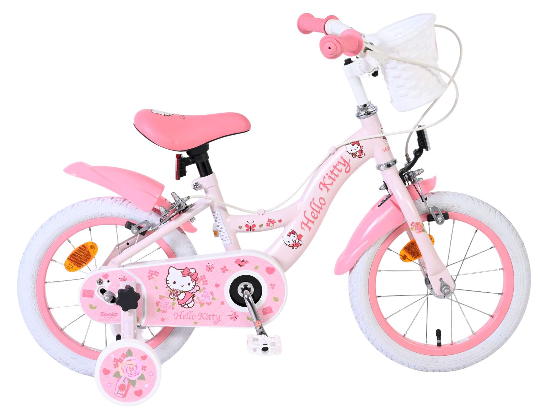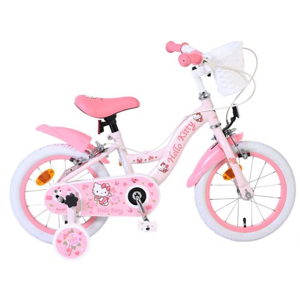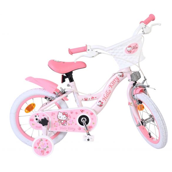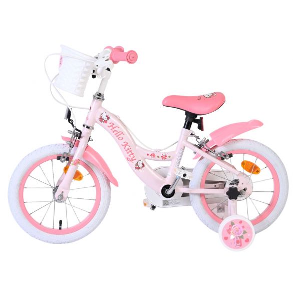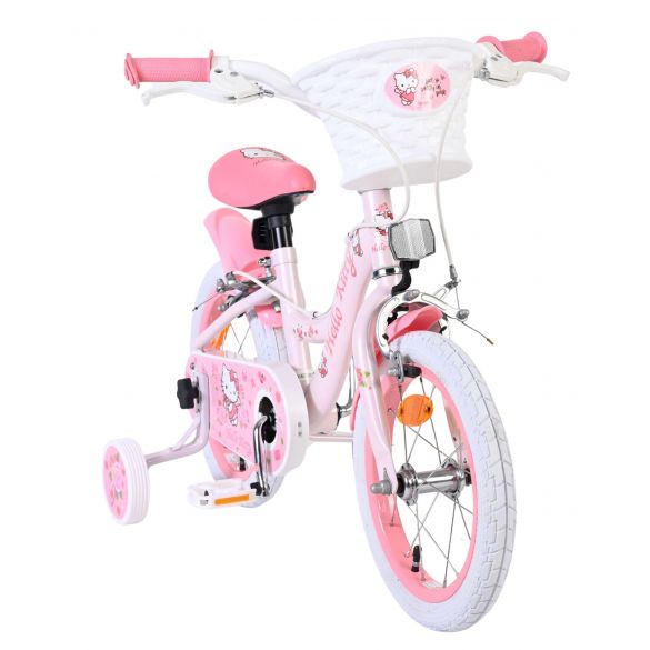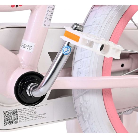 Met de Volare Hello Kitty 14 inch kinderfiets in lichtroze wordt leren fietsen een feestje. Deze vrolijke fiets is ontworpen om jonge fietsers een veilige en comfortabele start te geven, met een stabiele en kindvriendelijke opbouw.