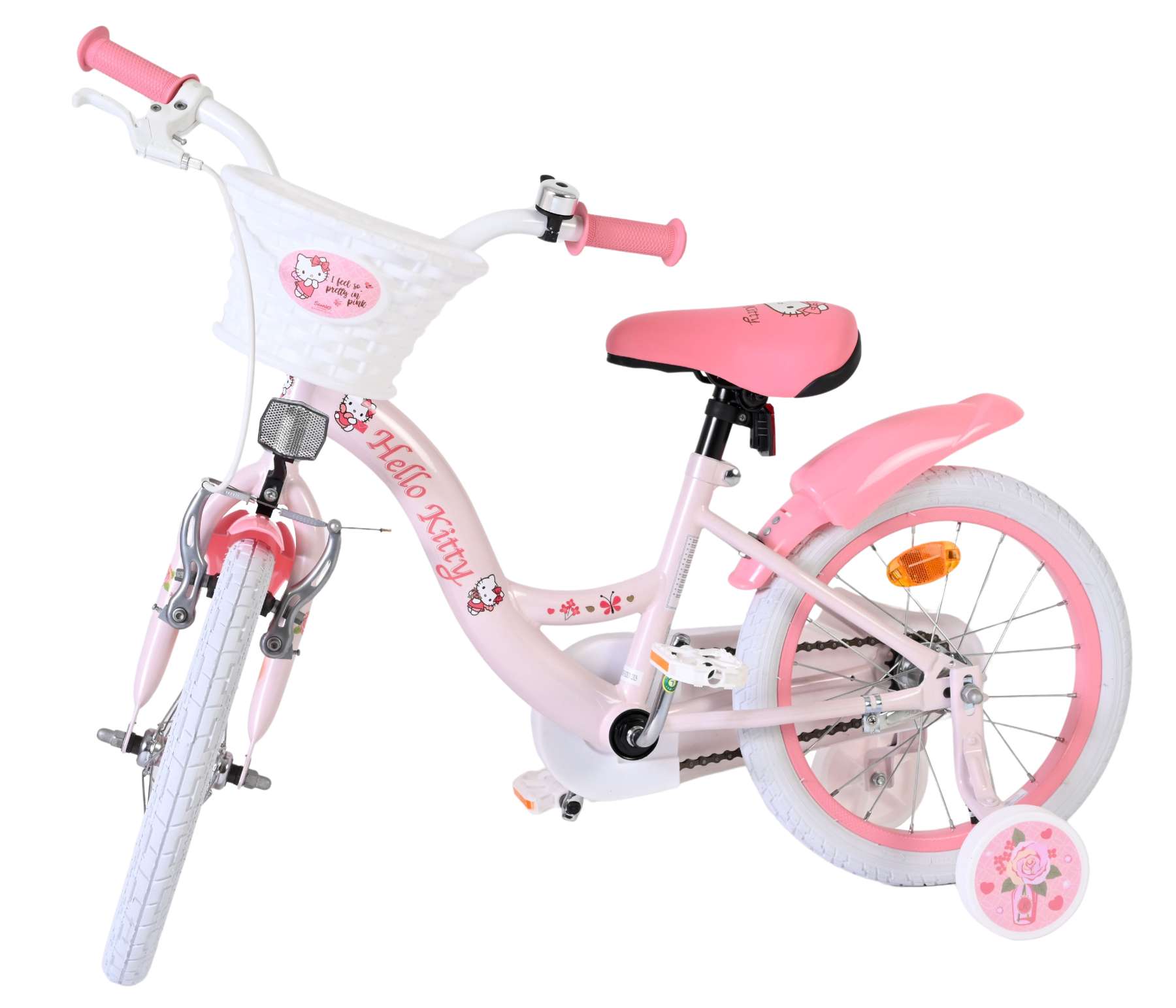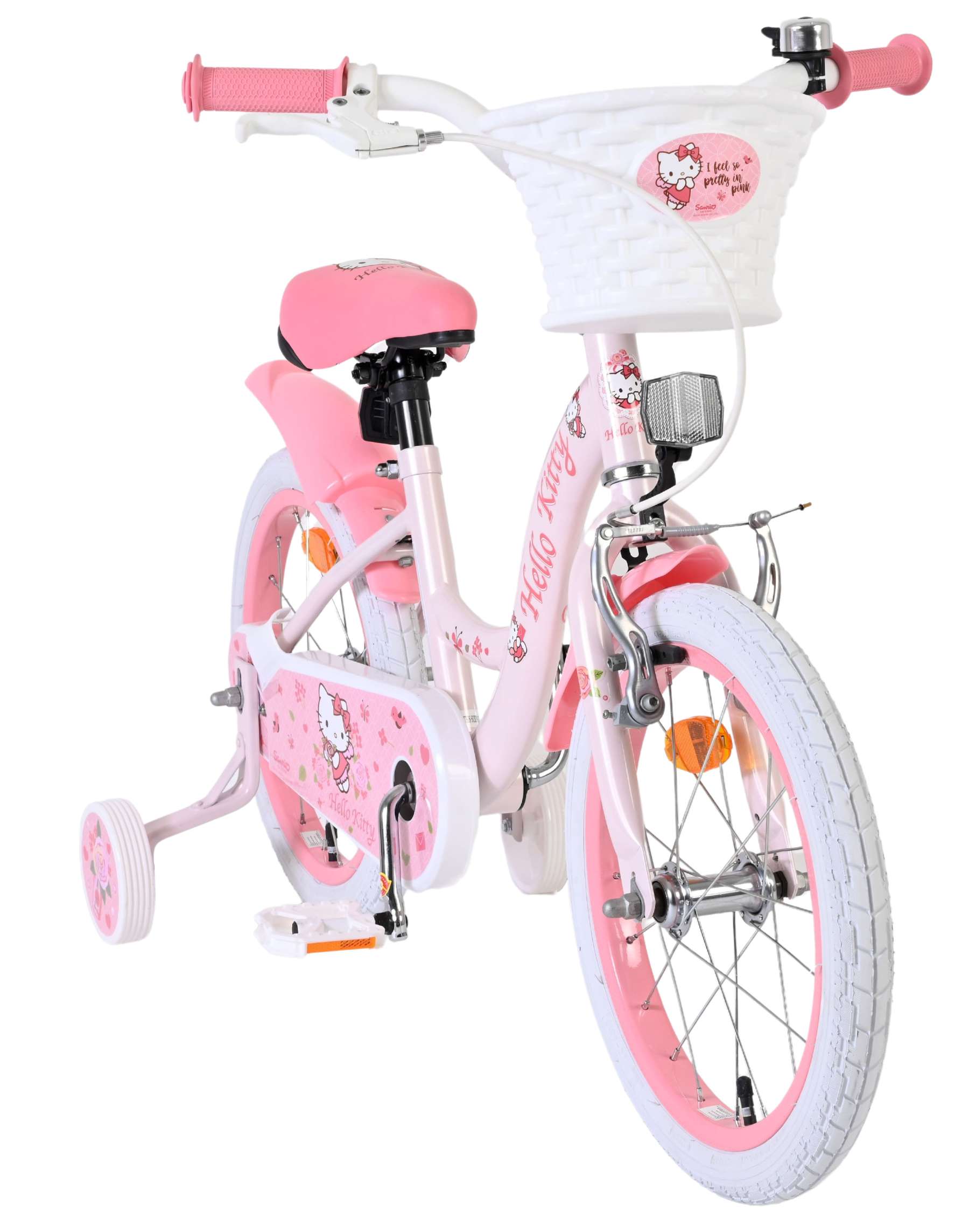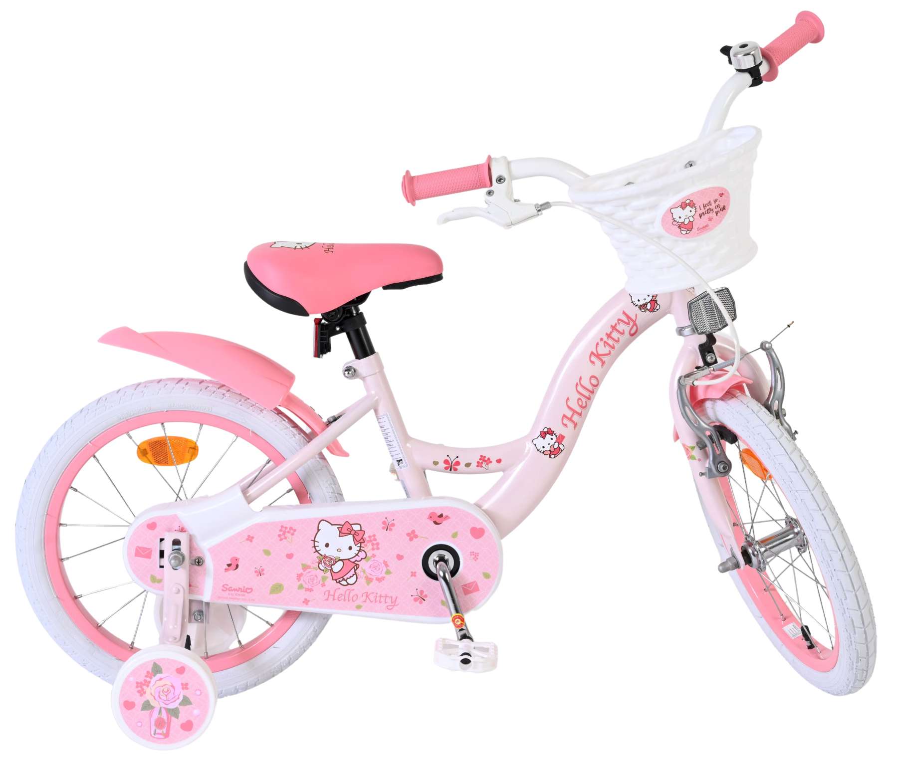 De Hello Kitty 16 inch kinderfiets in roze is een echte blikvanger voor kleine fans van Hello Kitty. Met de vrolijke details en het schattige design is elke rit naar school of door de buurt een feestje.