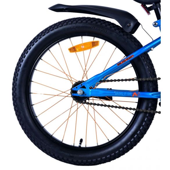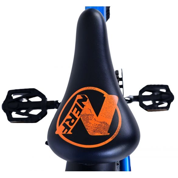 Sicherheit geht vor! Deshalb hat dieses coole Fahrrad eine Handbremse, eine Rücktrittbremse und eine schöne Klingel. Außerdem hat das Fahrrad Reflektoren in den Rädern, vorne und hinten. Auch an den Komfort wurde gedacht. Das schöne satinblaue NERF-Fahrrad mit orangefarbenen Akzenten hat einen extra weichen Sattel und Griffe, coole breite Reifen, einen stabilen Ständer und große Schutzbleche, die den ganzen Schmutz abhalten. Um möglichst lange Freude an dem Fahrrad zu haben, hat es eine extra lange Sattelstütze, damit es noch länger mit dem Kind mitwächst, und der Lenker ist höhenverstellbar. Kurzum: ein hochwertiges Fahrrad, an dem Ihr Kind jahrelang Freude haben wird!