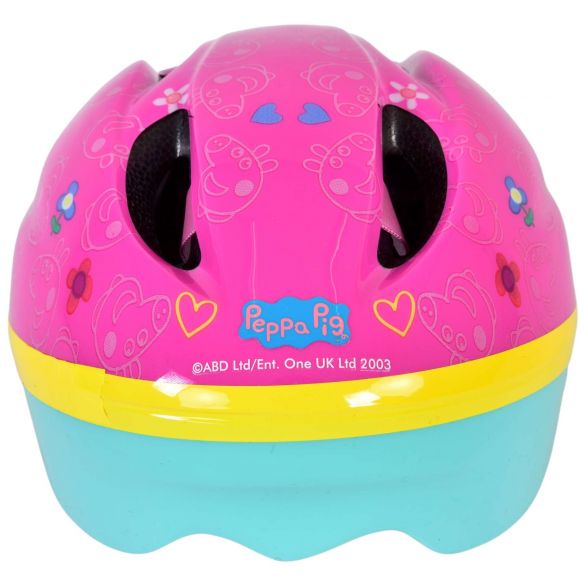 Volare Bicycles hat eine große Sammlung von lizenzierten Helmen. Einer davon ist dieser schöne Fahrradhelm von Peppa Pig. Die schöne dunkelrosa Farbe und die Peppa Pig Verzierungen geben dem Helm ein perfektes Aussehen. Mit dem Zifferblatt ist der Kopfumfang des Helmes von 51 bis 55 cm einstellbar. Die Unterseite des Helms ist ebenfalls abgedeckt. Der Helm wiegt nur 240 Gramm. Das macht sie extra leicht und daher leicht zu tragen. Der Helm ist nach den strengsten Anforderungen des TÜV/GS zugelassen.