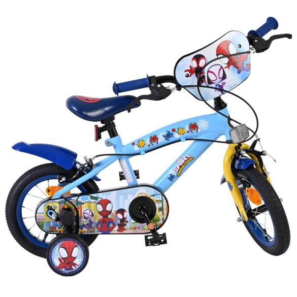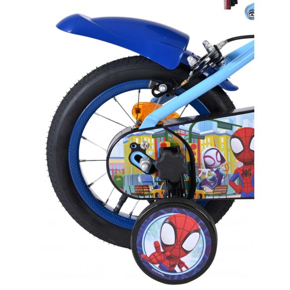 Sicherheit steht an erster Stelle! Deshalb hat dieses coole Fahrrad zwei Handbremsen (keine Rücktrittbremse) und einen geschlossenen Kettenschutz. Außerdem hat das Fahrrad abnehmbare Seitenräder zum schnellen Lernen auf dem Fahrrad und Reflektoren in den Pedalen. Auch an den Komfort wurde gedacht. Das schöne hellblaue Spidey-Bike mit dunkelblauen Akzenten hat einen angenehm weichen Sattel und einen extra stabilen Rahmen, der einiges aushalten kann. Damit Sie möglichst lange Freude an dem Fahrrad haben, sind Sattel und Lenker höhenverstellbar. Kurzum: ein hochwertiges Fahrrad, an dem Ihr Kind jahrelang Freude haben wird!