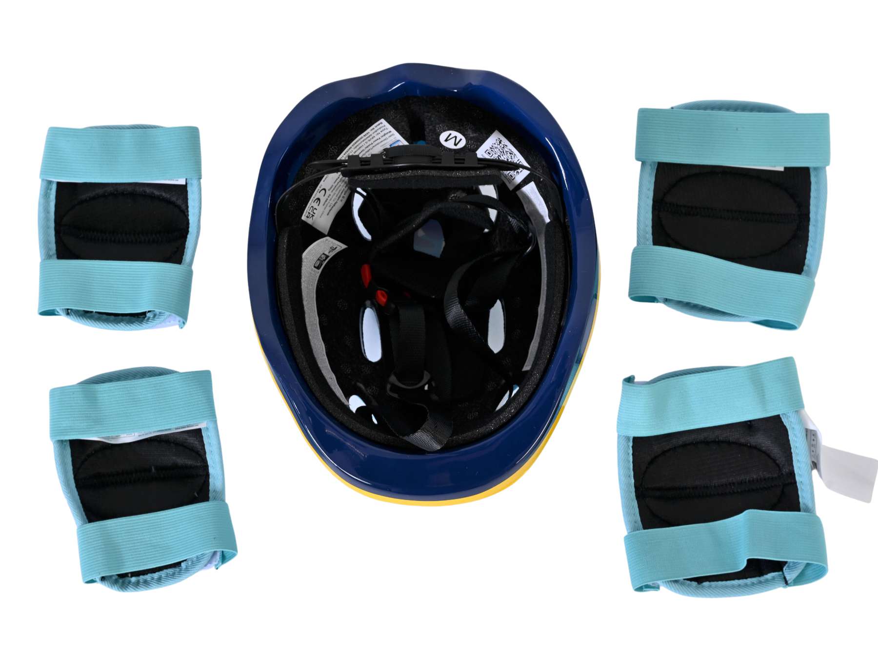 De set bestaat uit kniebeschermers, elleboogbeschermers en een helm, zodat de belangrijkste zones goed beschermd zijn bij een val of stoot. Alles wordt geleverd in een leuke tas, waardoor je de protectie eenvoudig kunt meenemen naar school, het park of op vakantie en na gebruik weer netjes kunt opbergen.