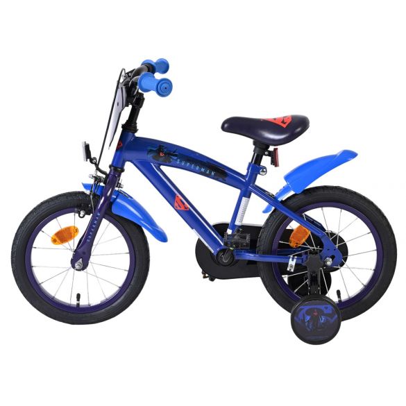 De Superman 14 inch kinderfiets is gemaakt voor jonge helden die klaar zijn voor hun eigen avontuur! Deze stoere fiets in donkerblauw heeft een krachtig Superman-ontwerp met een coole voorplaat met het iconische Superman-logo — perfect voor elke kleine superheld.