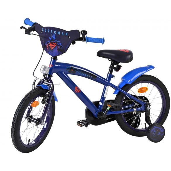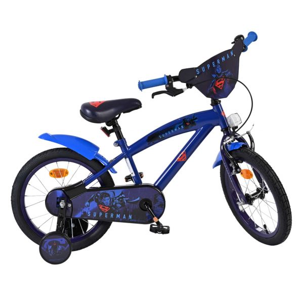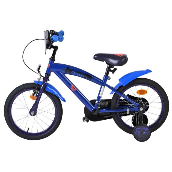 Met de Superman 16 inch kinderfiets voelt ieder kind zich een echte superheld! Deze stoere donkerblauwe fiets is voorzien van een gave voorplaat met de iconische Superman-afbeelding en is helemaal klaar voor spannende avonturen.