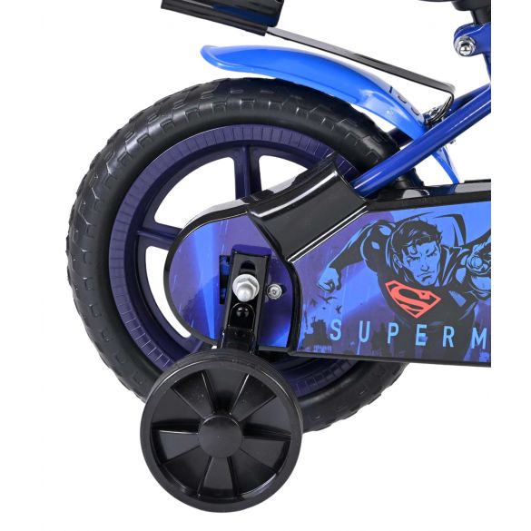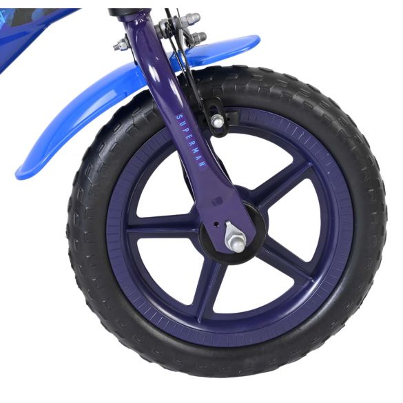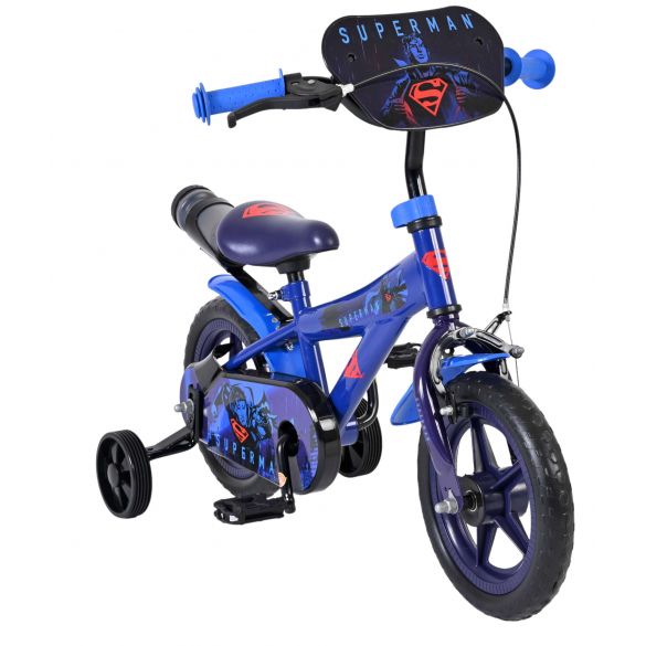 Met de Superman 12 inch jongensfiets wordt leren fietsen een stoer avontuur. Deze kinderfiets is perfect voor de eerste veilige meters en is uitgerust met massieve EVA banden. Daardoor rijdt de fiets licht en comfortabel en heb je geen zorgen over lekke banden. Deze fiets heeft een doortrapsysteem waarmee het kind voor - als achteruit kan fietsen. Ook beschikt de fiets over 1 handrem