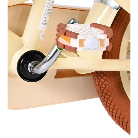 Veiligheid staat voorop bij de Volare Ashley 12 inch kinderfiets. Daarom is deze mooie creme fiets uitgerust met zowel een terugtraprem als een handrem. Om het leren fietsen zo makkelijk mogelijk te maken, is de fiets voorzien van afneembare zijwielen die extra stabiliteit geven in het begin. Zodra je kind er klaar voor is, kunnen deze eenvoudig verwijderd worden.