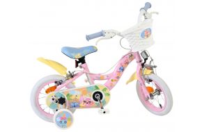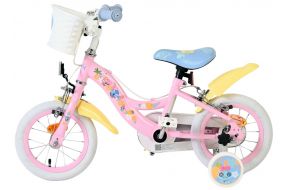 De Volare Ashley 12 inch kinderfiets is een vrolijke en comfortabele fiets die helemaal klaar is voor de eerste fietservaringen van je kind. Deze mooie roze fiets is uitgerust met twee handremmen (geen terugtraprem), waardoor je kind op een veilige en vertrouwde manier leert remmen. De afneembare zijwielen zorgen voor extra stabiliteit in het begin en kunnen eenvoudig verwijderd worden zodra je kind klaar is om zelfstandig te fietsen.