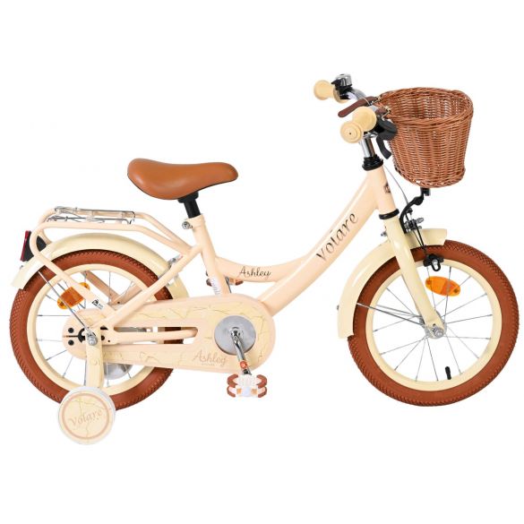 De Volare Ashley 14 inch kinderfiets is een perfecte combinatie van comfort, gebruiksgemak en een vrolijk design. Deze mooie creme fiets is uitgerust met zowel een terugtraprem als een handrem, zodat je kind op een prettige manier leert remmen. De afneembare zijwielen zorgen voor extra stabiliteit tijdens het leren fietsen en kunnen eenvoudig worden verwijderd zodra je kind meer vertrouwen heeft.