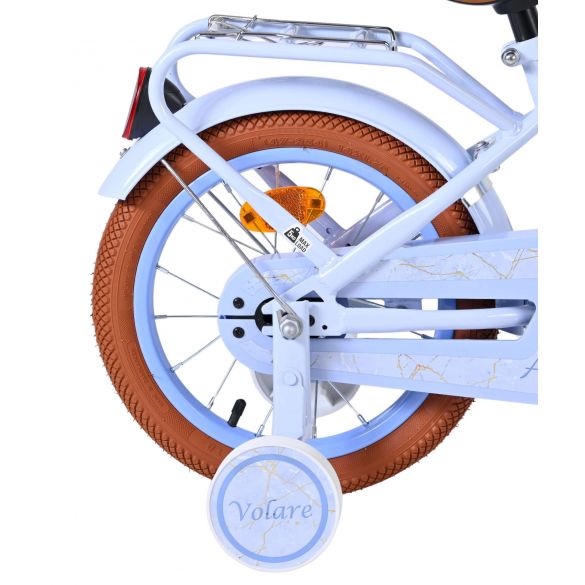 De Volare Ashley 14 inch kinderfiets is een perfecte combinatie van comfort, gebruiksgemak en een vrolijk design. Deze mooie blauwe fiets is uitgerust met zowel een terugtraprem als een handrem, zodat je kind op een prettige manier leert remmen. De afneembare zijwielen zorgen voor extra stabiliteit tijdens het leren fietsen en kunnen eenvoudig worden verwijderd zodra je kind meer vertrouwen heeft.