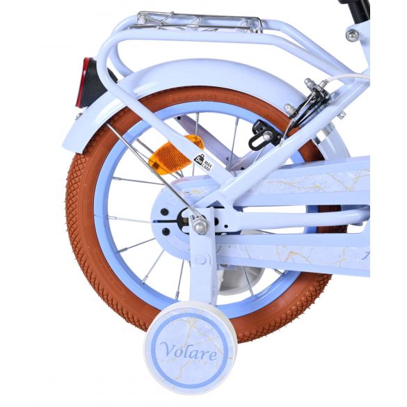 De Volare Ashley 14 inch kinderfiets is een vrolijke en comfortabele fiets die perfect past bij de volgende stap in het leren fietsen. Deze mooie blauwe fiets is uitgerust met twee handremmen (geen terugtraprem), zodat je kind op een gecontroleerde en vertrouwde manier leert remmen. De afneembare zijwielen bieden extra stabiliteit in het begin en kunnen eenvoudig verwijderd worden zodra je kind zelfstandig kan fietsen.