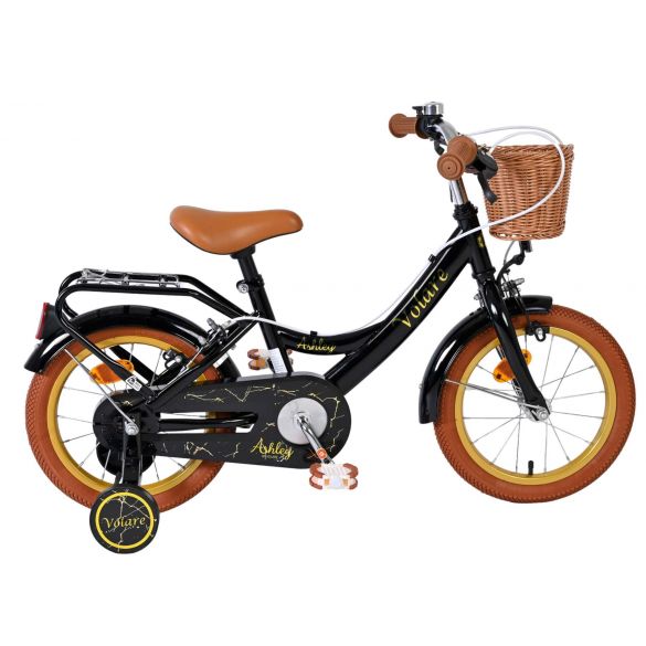 De Volare Ashley 14 inch kinderfiets is een vrolijke en comfortabele fiets die perfect past bij de volgende stap in het leren fietsen. Deze mooie zwarte fiets is uitgerust met twee handremmen (geen terugtraprem), zodat je kind op een gecontroleerde en vertrouwde manier leert remmen. De afneembare zijwielen bieden extra stabiliteit in het begin en kunnen eenvoudig verwijderd worden zodra je kind zelfstandig kan fietsen.