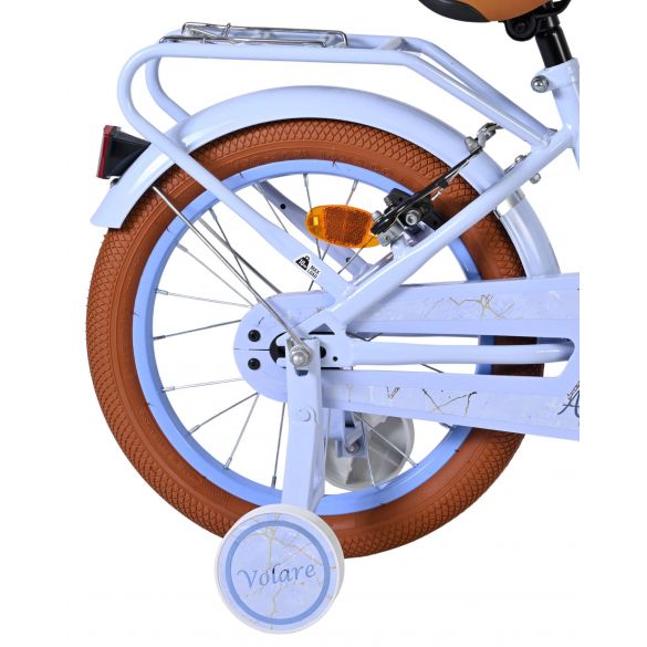 De Volare Ashley 16 inch kinderfiets is een vrolijke en comfortabele fiets die perfect aansluit bij kinderen die al wat zekerder fietsen. Deze mooie blauwe fiets is uitgerust met twee handremmen (geen terugtraprem), zodat je kind op een gecontroleerde en vertrouwde manier leert remmen. De afneembare zijwielen bieden extra ondersteuning waar nodig en kunnen eenvoudig verwijderd worden zodra je kind volledig zelfstandig fietst.