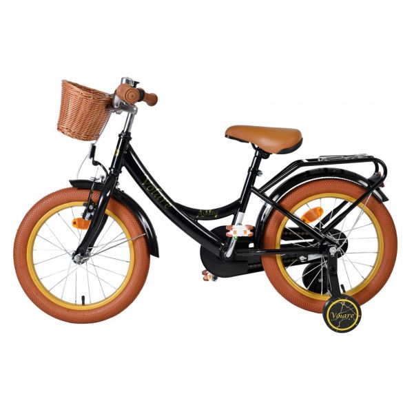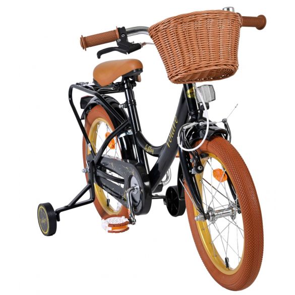 De Volare Ashley 16 inch kinderfiets is een vrolijke en comfortabele fiets die perfect aansluit bij kinderen die al wat zekerder fietsen. Deze mooie zwarte fiets is uitgerust met een terugtraprem en één handrem, zodat je kind op een natuurlijke manier leert remmen en extra controle heeft tijdens het fietsen. De afneembare zijwielen bieden ondersteuning waar nodig en kunnen eenvoudig verwijderd worden zodra je kind volledig zelfstandig fietst.