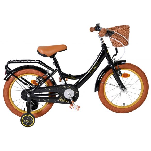 De Volare Ashley 16 inch kinderfiets is een vrolijke en comfortabele fiets die perfect aansluit bij kinderen die al wat zekerder fietsen. Deze mooie zwarte fiets is uitgerust met twee handremmen (geen terugtraprem), zodat je kind op een gecontroleerde en vertrouwde manier leert remmen. De afneembare zijwielen bieden extra ondersteuning waar nodig en kunnen eenvoudig verwijderd worden zodra je kind volledig zelfstandig fietst.