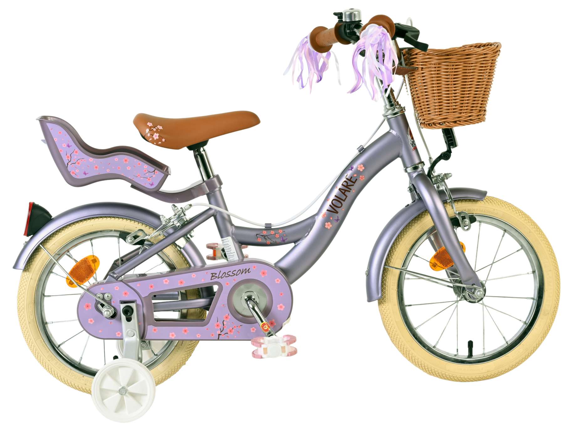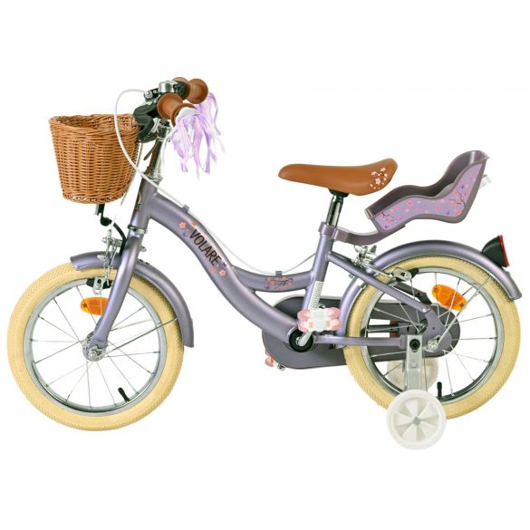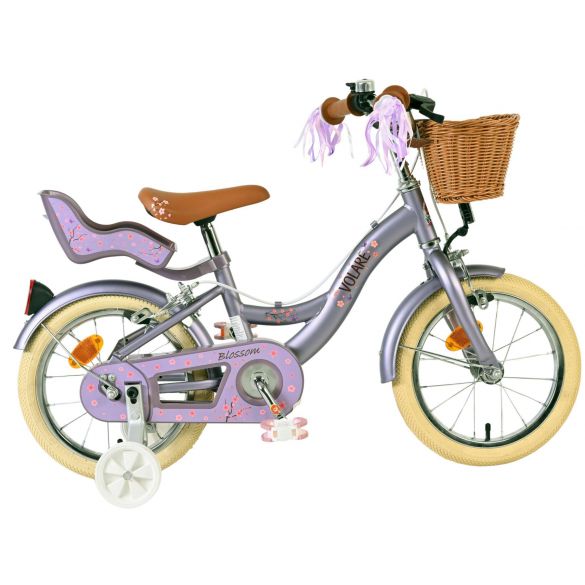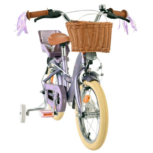 Veiligheid staat voorop! Daarom heeft deze gave fiets geen terugtraprem maar twee handremmen, afneembare zijwieltjes en een gesloten kettingkast. Ook aan het comfort is gedacht. De mooie paarse Volare fiets heeft een comfortabel zacht zadel, een poppenzitje, vrolijke handvatversieringen en een handig rieten mandje. Om zo lang mogelijk van de fiets te kunnen genieten zijn het zadel en stuur in hoogte verstelbaar. Wordt geleverd inclusief al het montagemateriaal dat nodig is om de fiets in elkaar te zetten!