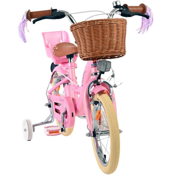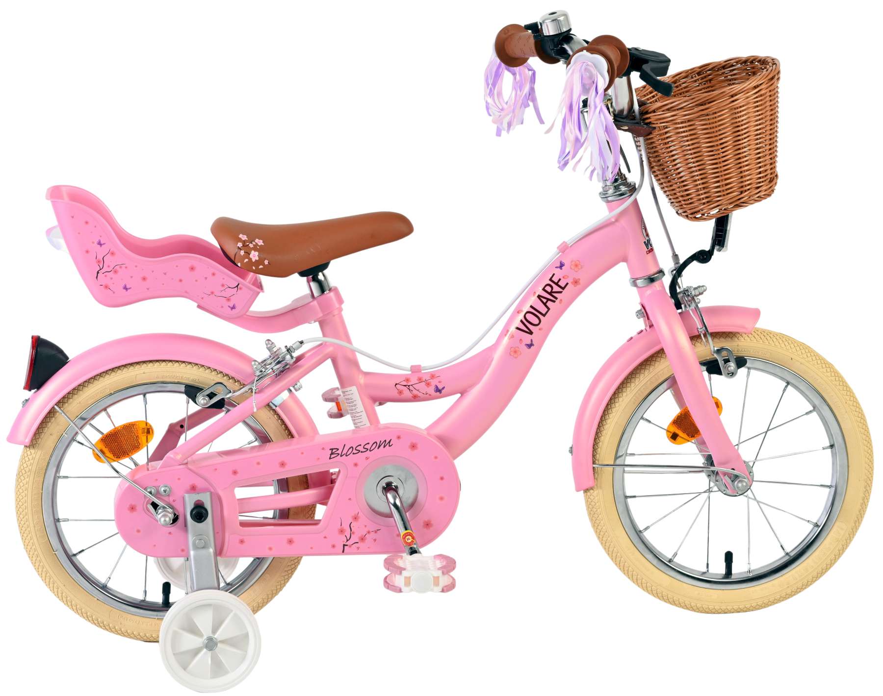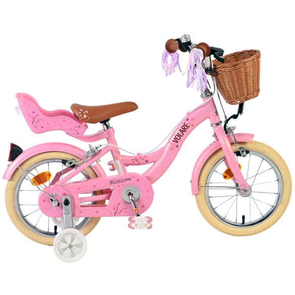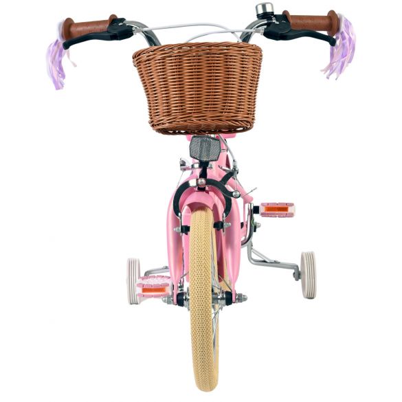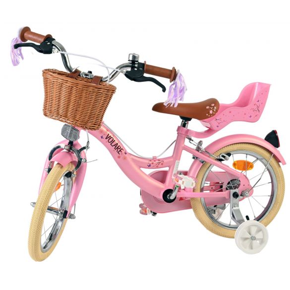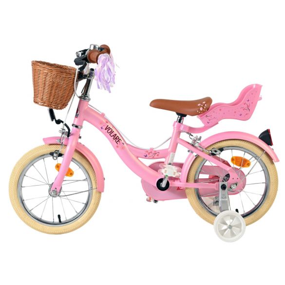 Veiligheid staat voorop! Daarom heeft deze gave fiets geen terugtraprem maar twee handremmen, afneembare zijwieltjes en een gesloten kettingkast. De fiets heeft reflectoren van voor, achter en in de wielen. Ook aan het comfort is gedacht. De mooie roze Volare fiets heeft, een comfortabel zacht zadel, een poppenzitje, vrolijke handvatversieringen en een handig rieten mandje. Om zo lang mogelijk van de fiets te kunnen genieten zijn het zadel en stuur in hoogte verstelbaar. Wordt geleverd inclusief al het montagemateriaal dat nodig is om de fiets in elkaar te zetten!