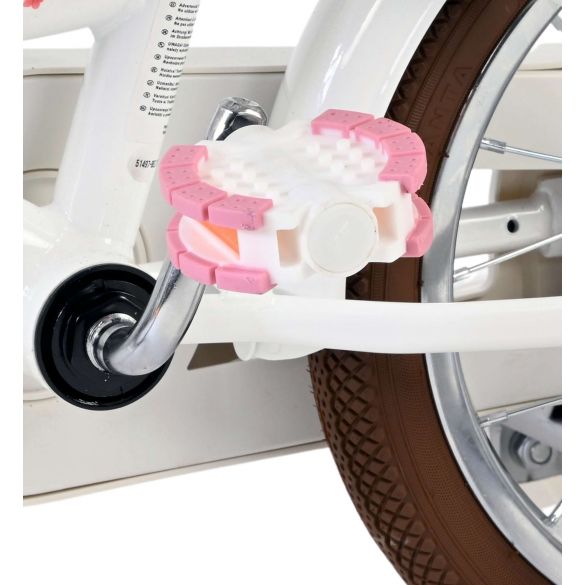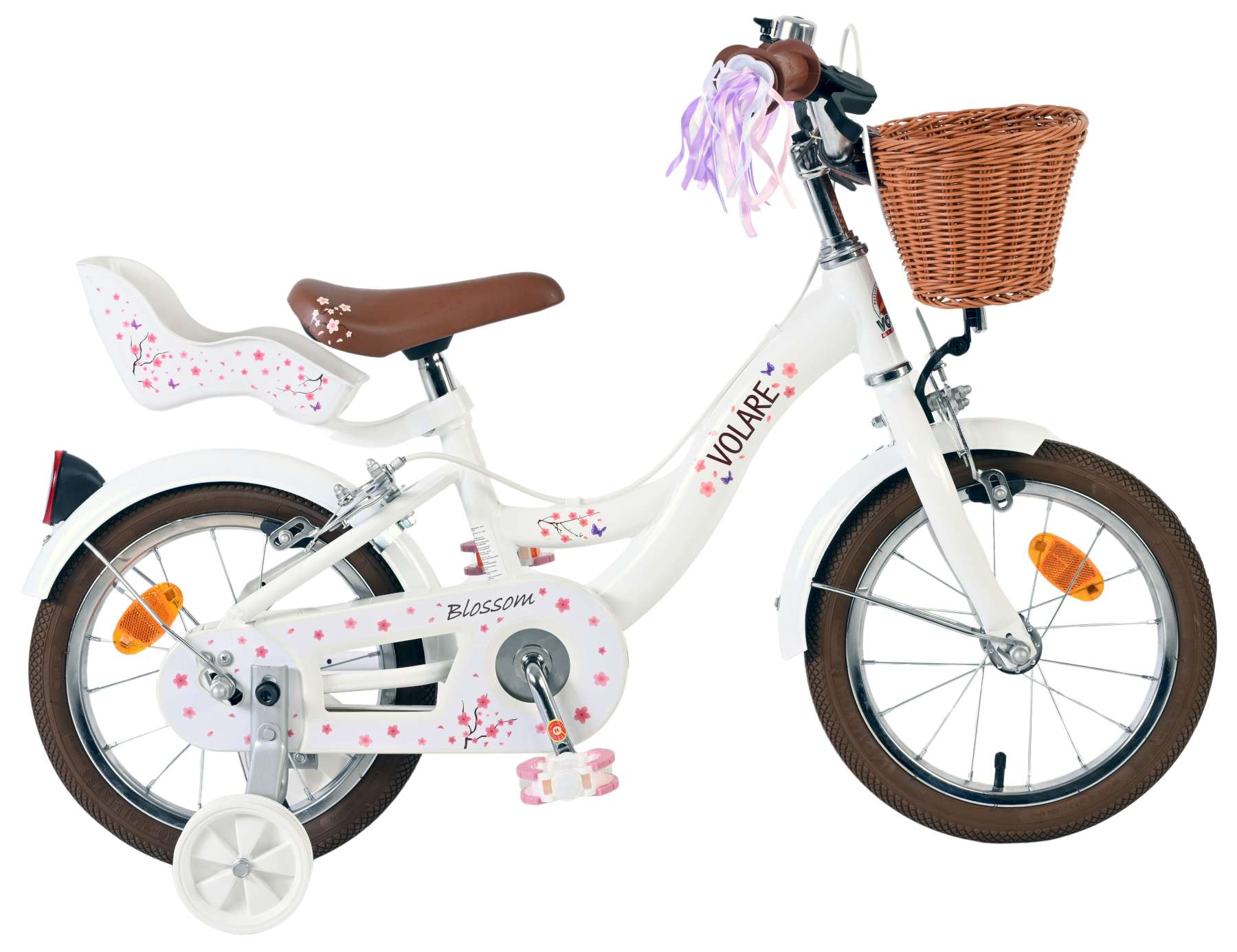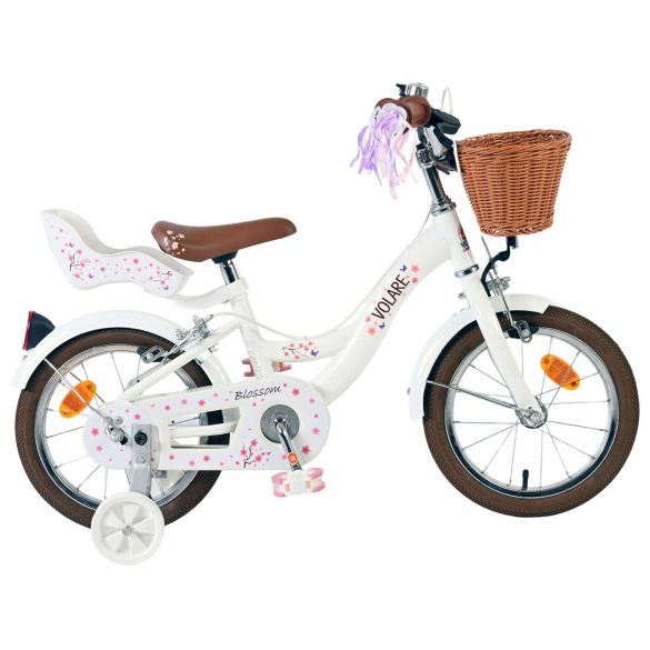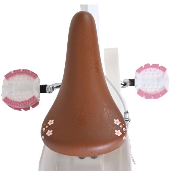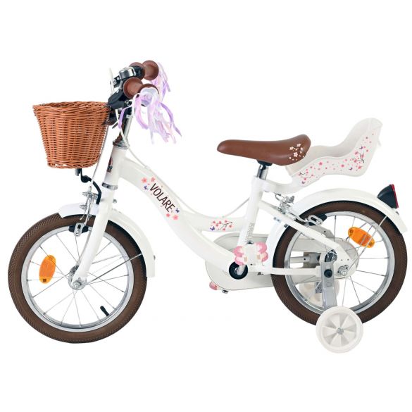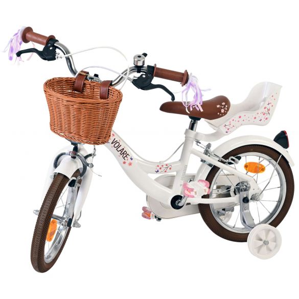 Veiligheid staat voorop! Daarom heeft deze gave fiets (GEEN TERUGTRAPREM) maar twee handremmen, afneembare zijwieltjes en een gesloten kettingkast. Ook aan het comfort is gedacht. De mooie witte Volare fiets heeft een comfortabel zacht zadel, een poppenzitje, vrolijke handvatversieringen en een handig rieten mandje. Om zo lang mogelijk van de fiets te kunnen genieten zijn het zadel en stuur in hoogte verstelbaar. Wordt geleverd inclusief al het montagemateriaal dat nodig is om de fiets in elkaar te zetten!