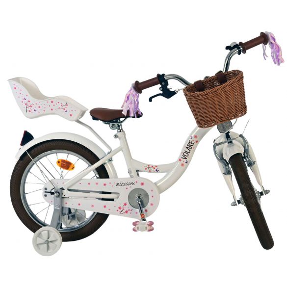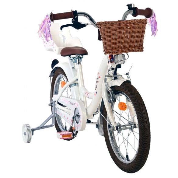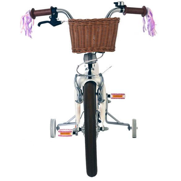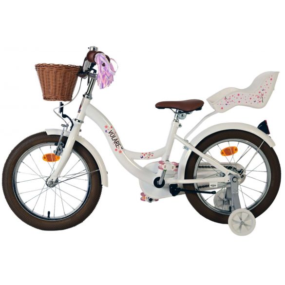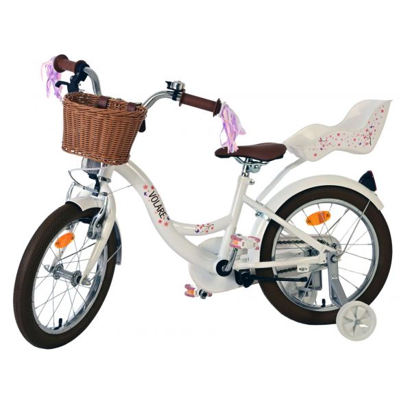 Veiligheid staat voorop! Daarom heeft deze gave fiets een handrem en een terugtraprem, afneembare zijwieltjes en een gesloten kettingkast. Ook aan het comfort is gedacht. De mooie witte Volare fiets heeft een comfortabel zacht zadel, een poppenzitje, vrolijke handvatversieringen en een handig rieten mandje. Om zo lang mogelijk van de fiets te kunnen genieten zijn het zadel en stuur in hoogte verstelbaar. Wordt geleverd inclusief al het montagemateriaal dat nodig is om de fiets in elkaar te zetten!