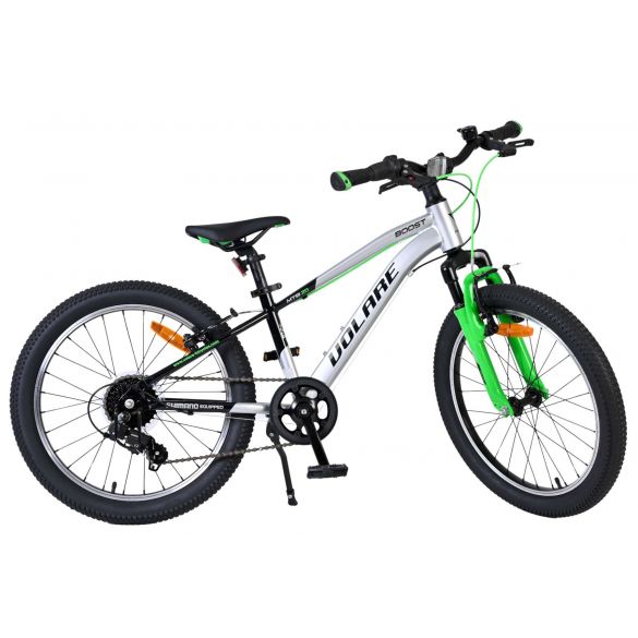 De Volare Boost 20 inch in zilver met grijze accenten is een stoere, sportieve fiets voor kids die graag tempo maken én comfortabel willen rijden. Dankzij de 21 Shimano versnellingen schakel je soepel mee met elke rit, of je nu door de buurt fietst, een langere route maakt of tegenwind hebt.