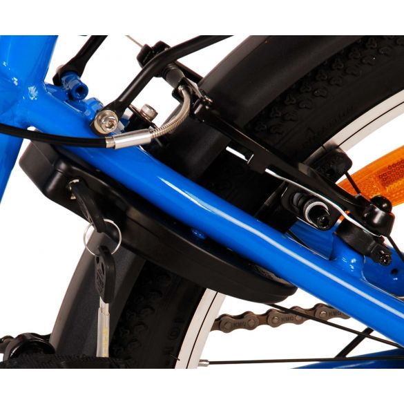 Sicherheit steht an erster Stelle! Deshalb hat dieses coole Fahrrad auch keine Rücktrittbremse, sondern zwei Handbremsen, 6 Gänge, Reflektoren in den Rädern und batteriebetriebene Vorder- und Rücklichter. Auch an den Komfort wurde gedacht. Das schöne dunkelblaue Volare Fahrrad hat einen praktischen Gepäckträger, auf dem du alle deine Sachen mühelos transportieren kannst, einen bequemen, weichen Sattel, einen Ständer, damit dein Fahrrad immer ordentlich steht, und ein stabiles Schloss. Um möglichst lange Freude an dem Fahrrad zu haben, hat es eine extra lange Sattelstütze, so dass das Fahrrad noch länger mit dem Kind mitwächst. Bitte beachten Sie, dass der Lenker nicht in der Höhe verstellbar ist!
