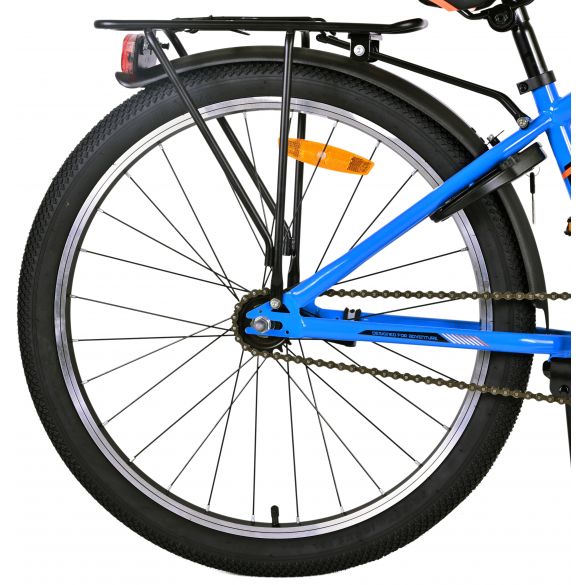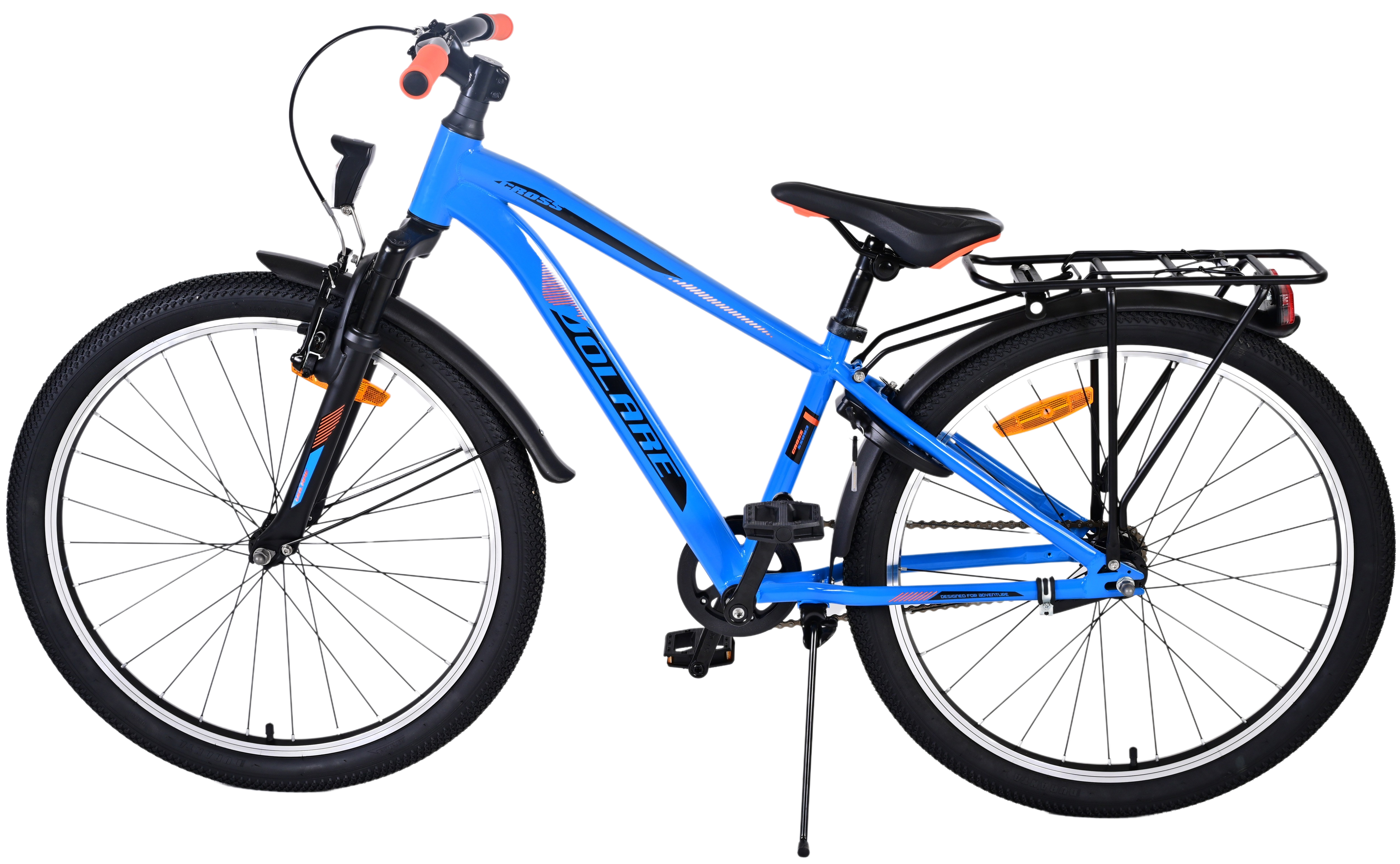 Sicherheit steht an erster Stelle! Deshalb hat dieses coole Fahrrad eine Handbremse und eine Rücktrittbremse, Reflektoren in den Rädern und batteriebetriebene Vorder- und Rücklichter. Auch an den Komfort wurde gedacht. Das schöne dunkelblaue Volare hat einen praktischen Gepäckträger, auf dem du deine Sachen mühelos transportieren kannst, einen bequemen weichen Sattel, einen Ständer, damit dein Fahrrad immer ordentlich steht, und ein stabiles Schloss. Um möglichst lange Freude an dem Fahrrad zu haben, hat es eine extra lange Sattelstütze, so dass das Fahrrad noch länger mit dem Kind mitwächst. Bitte beachten Sie, dass der Lenker nicht in der Höhe verstellbar ist!