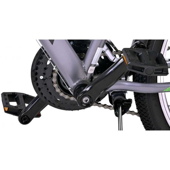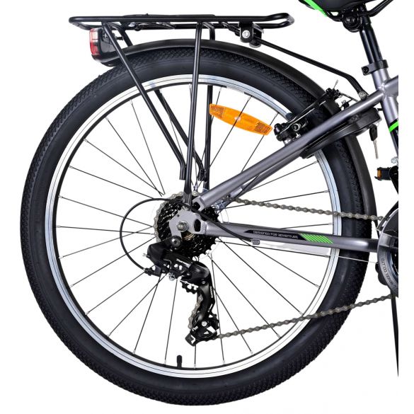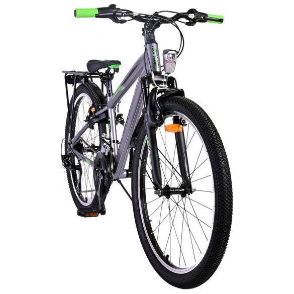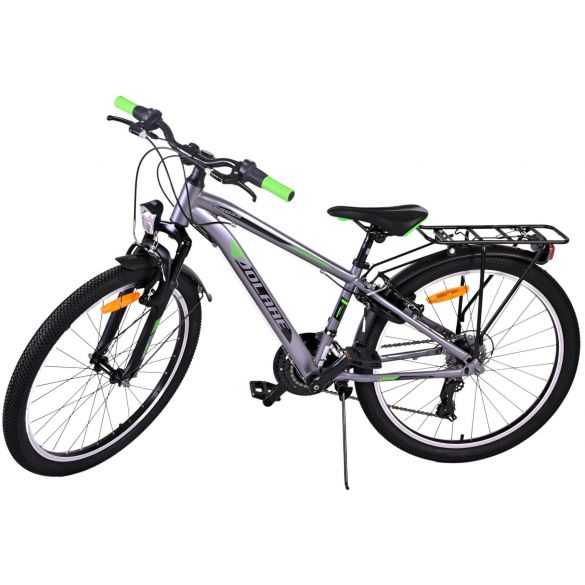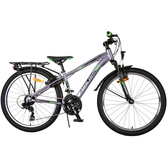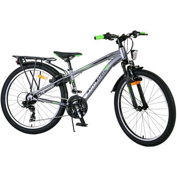 Sicherheit steht an erster Stelle! Deshalb hat dieses coole Fahrrad keine Rücktrittbremse, sondern zwei Handbremsen, 21 Gänge, Reflektoren in den Rädern und batteriebetriebene Vorder- und Rücklichter. Auch an den Komfort wurde gedacht. Das schöne dunkelgraue Volare verfügt über einen praktischen Gepäckträger, auf dem du alle deine Sachen mühelos transportieren kannst, einen bequemen, weichen Sattel, einen Ständer, damit dein Fahrrad immer ordentlich steht, und ein stabiles Schloss. Um möglichst lange Freude an dem Fahrrad zu haben, hat es eine extra lange Sattelstütze, so dass das Fahrrad noch länger mit dem Kind mitwächst. Bitte beachten Sie, dass der Lenker nicht in der Höhe verstellbar ist!
