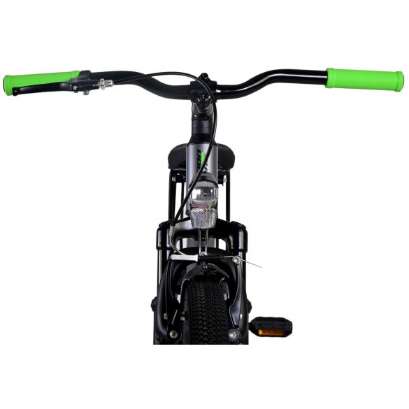 Sicherheit steht an erster Stelle! Deshalb hat dieses coole Fahrrad eine Handbremse und eine Rücktrittbremse, Reflektoren in den Rädern und batteriebetriebene Vorder- und Rücklichter. Auch an den Komfort wurde gedacht. Das schöne dunkelgraue Volare hat einen praktischen Gepäckträger, auf dem du alle deine Sachen mühelos transportieren kannst, einen bequemen, weichen Sattel, einen Ständer, damit dein Fahrrad immer ordentlich steht, und ein stabiles Schloss. Um möglichst lange Freude an dem Fahrrad zu haben, hat es eine extra lange Sattelstütze, so dass das Fahrrad noch länger mit dem Kind mitwächst. Bitte beachten Sie, dass der Lenker nicht in der Höhe verstellbar ist!