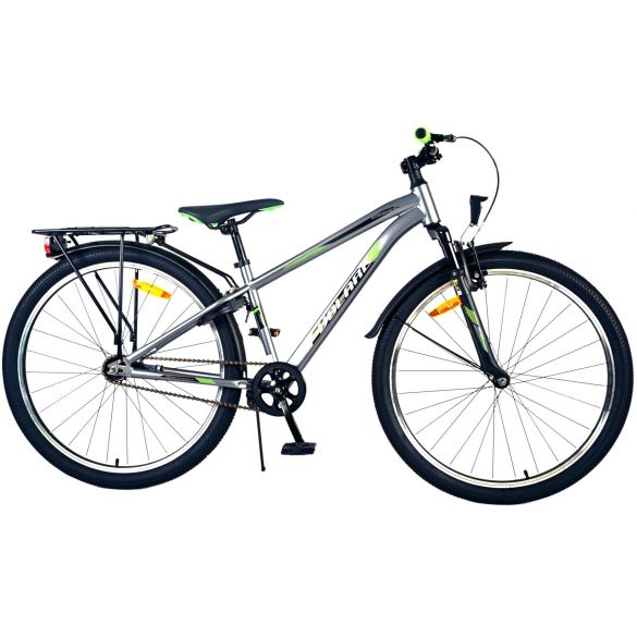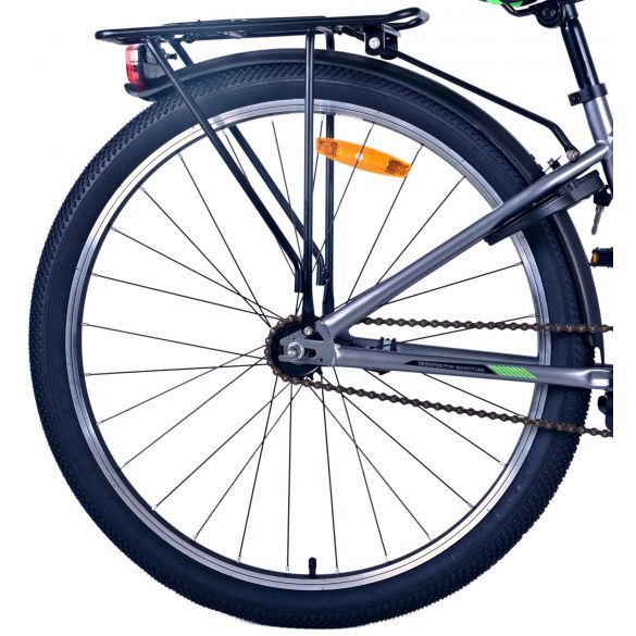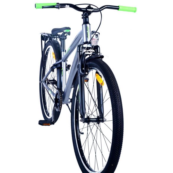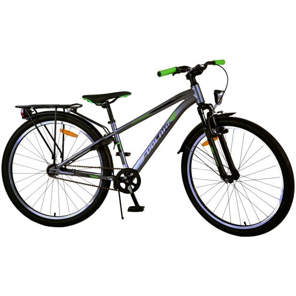 Sicherheit steht an erster Stelle! Deshalb hat dieses coole Fahrrad eine Handbremse und eine Rücktrittbremse, Reflektoren in den Rädern und batteriebetriebene Vorder- und Rücklichter. Auch an den Komfort wurde gedacht. Das schöne dunkelgraue Volare hat einen praktischen Gepäckträger, auf dem du alle deine Sachen mühelos transportieren kannst, einen bequemen, weichen Sattel, einen Ständer, damit dein Fahrrad immer ordentlich steht, und ein stabiles Schloss. Um möglichst lange Freude an dem Fahrrad zu haben, hat es eine extra lange Sattelstütze, so dass das Fahrrad noch länger mit dem Kind mitwächst. Bitte beachten Sie, dass der Lenker nicht in der Höhe verstellbar ist!