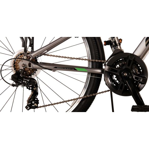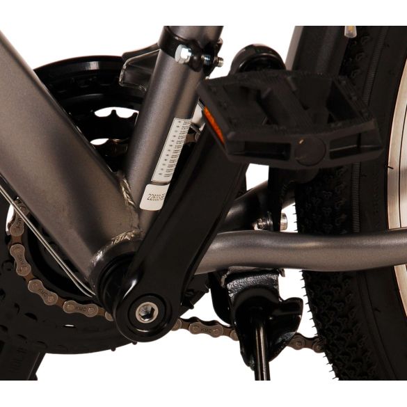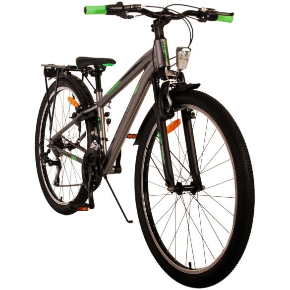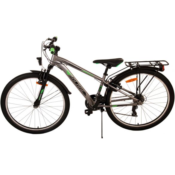 Sicherheit steht an erster Stelle! Deshalb hat dieses robuste Fahrrad keine Rücktrittbremse, sondern zwei Handbremsen, 21 Gänge, Reflektoren in den Rädern und batteriebetriebene Lichter an Vorder- und Hinterrad. Auch an den Komfort wurde gedacht. Das schöne graue Volare hat einen praktischen Gepäckträger, auf dem man seine Sachen mühelos transportieren kann, einen bequemen, weichen Sattel, einen Ständer, damit das Fahrrad immer ordentlich steht, und ein stabiles Schloss. Um möglichst lange Freude an dem Fahrrad zu haben, ist es mit einer extralangen Sattelstütze ausgestattet, so dass das Fahrrad noch länger mit dem Kind mitwächst. Bitte beachten Sie: der Lenker ist nicht höhenverstellbar!