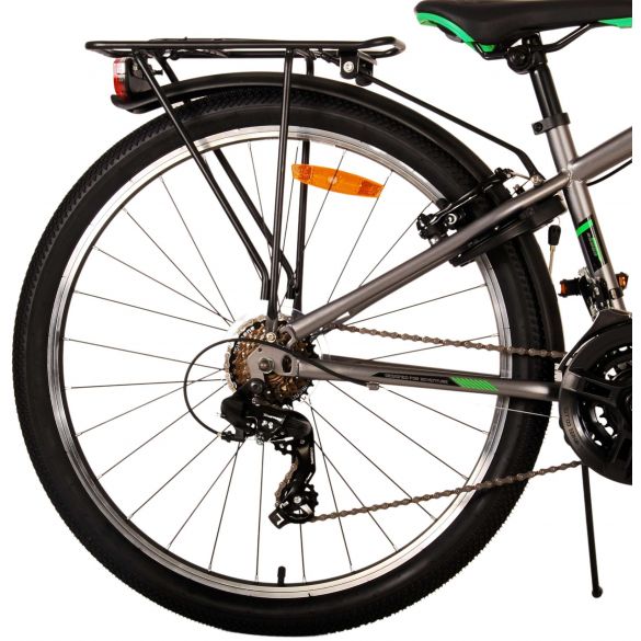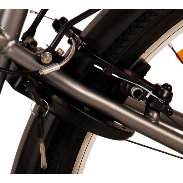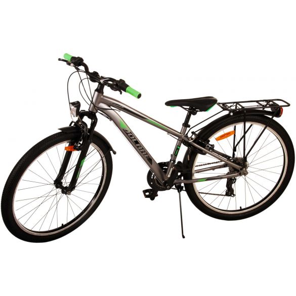 Sicherheit steht an erster Stelle! Deshalb hat dieses robuste Fahrrad keine Rücktrittbremse, sondern zwei Handbremsen, 21 Gänge, Reflektoren in den Rädern und batteriebetriebene Lichter an Vorder- und Hinterrad. Auch an den Komfort wurde gedacht. Das schöne graue Volare hat einen praktischen Gepäckträger, auf dem man seine Sachen mühelos transportieren kann, einen bequemen, weichen Sattel, einen Ständer, damit das Fahrrad immer ordentlich steht, und ein stabiles Schloss. Um möglichst lange Freude an dem Fahrrad zu haben, ist es mit einer extralangen Sattelstütze ausgestattet, so dass das Fahrrad noch länger mit dem Kind mitwächst. Bitte beachten Sie: der Lenker ist nicht höhenverstellbar!