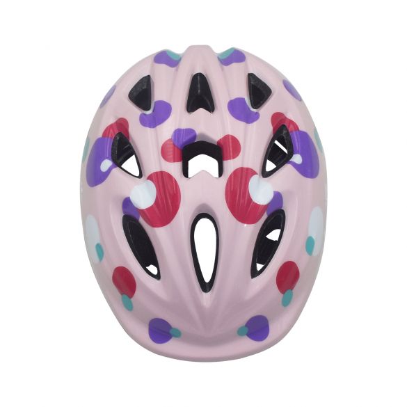 Schöner Volare Kids Fahrradhelm in der Farbe rosa mit bunten Punkten. Bereit für ein aufregendes Abenteuer? Dann ist dieser Helm Ihr bester Kumpel. Er bietet nicht nur die beste Sicherheit, sondern sieht mit seiner hübschen rosa Farbe auch noch cool aus. Dieser Helm ist im Kopfumfang von 47 bis 51 Zentimetern verstellbar und der Kinnriemen ist ebenfalls verstellbar. Der Helm ist leicht, hat Belüftungslöcher und ist sehr einfach zu tragen.